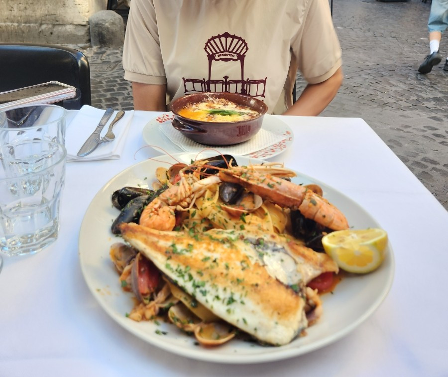 오늘로 로마여행이 마무리됩니다. 마지막 식사로 숙소 근처 식당에서 해산물 요리를 시켰습니다. 지난 5일간 모든 피곤함이 잠시 멈춘 듯 우리 부부는 정신없이 음식을 먹습니다. 5점 만점에 4.8점의 점수를 주고 싶다는 아내의 평가를 블로그에 남깁니다.