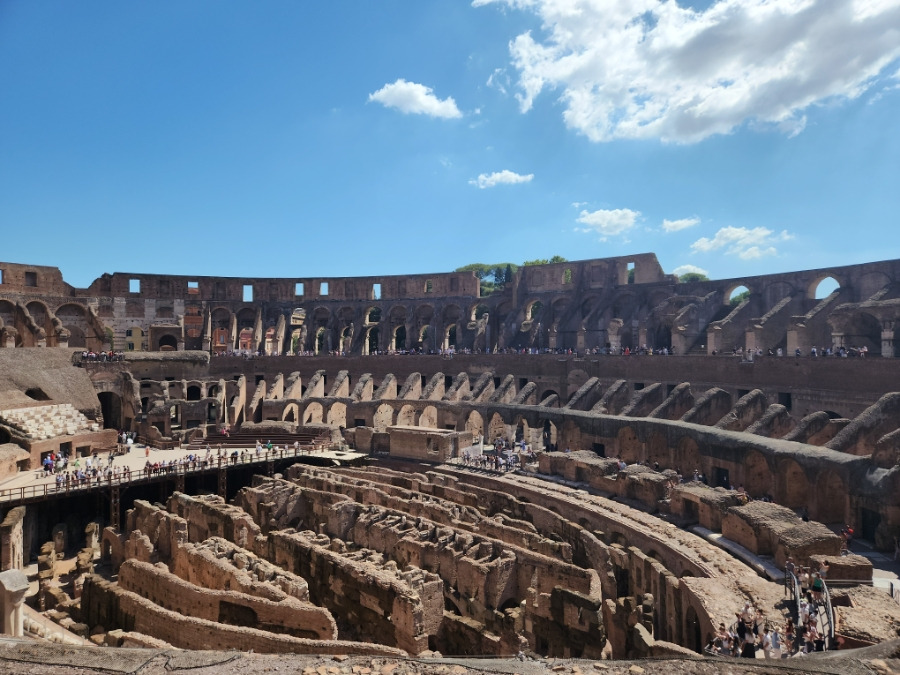 콜로세움 내부를 관광하는 동안 끔찍한 느낌이 지워지지 않습니다. 바닥에 나무판자를 깔고, 모래를 덮어 맹수나 사람이 피 흘려 죽으면 신속하게 뒤 처리 했다는 가이드님 설명이 들려오는 것만 같았고, 지하에서 죽음을 기다려야 했던 고대 검투사들의 환영이 보이는 듯해서 걷는 동안 힘들었습니다.