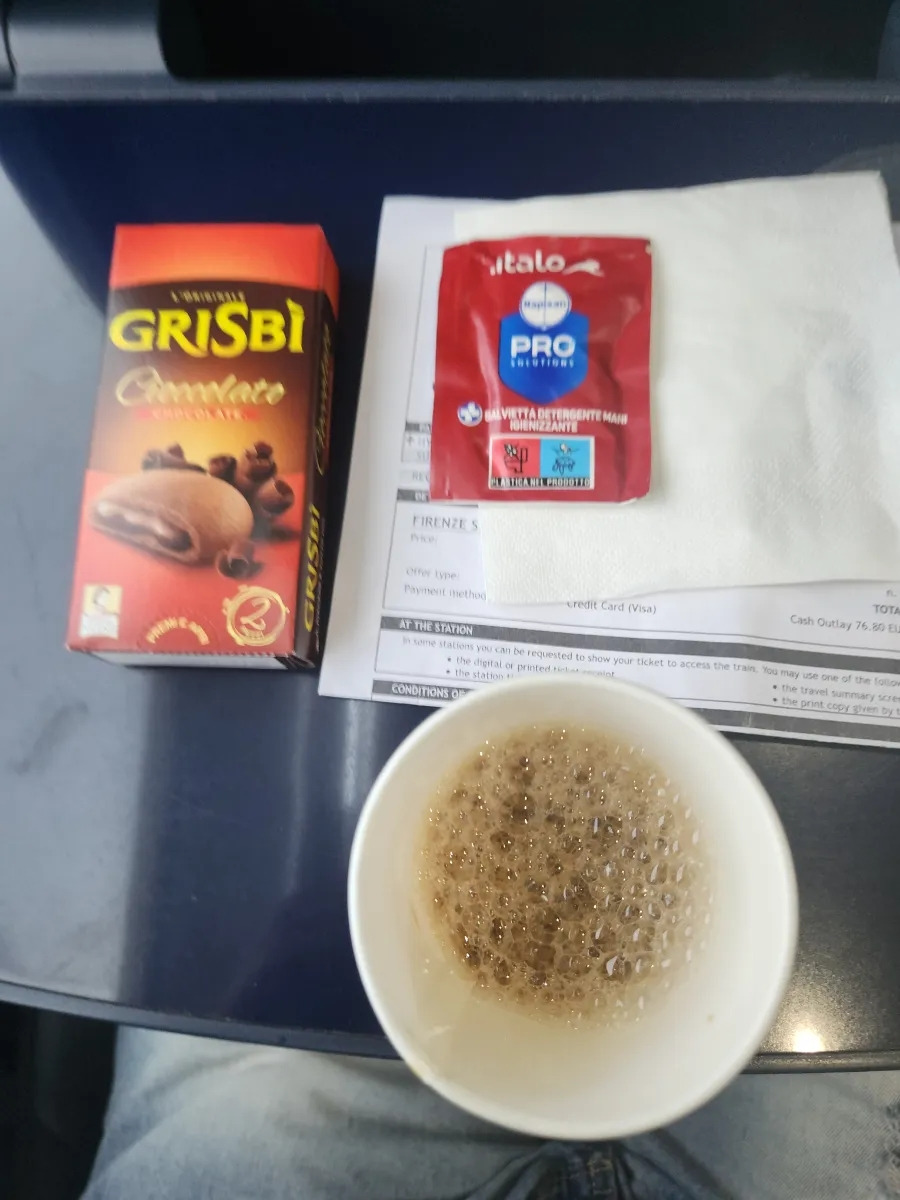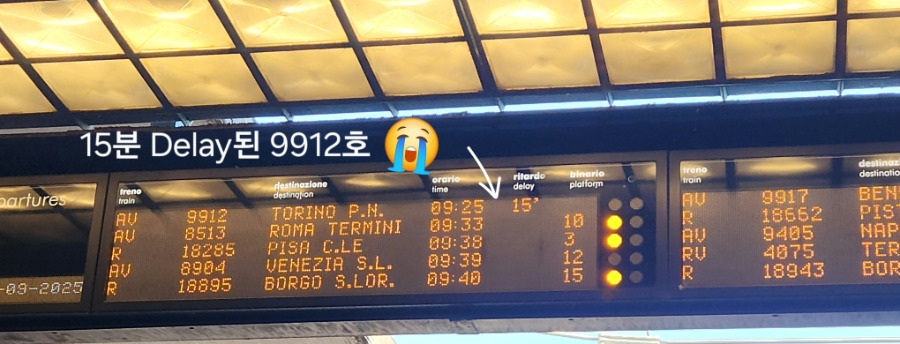09시 40분, 피렌체 산타마리아 노벨라역(Firenze S.M)에서 밀라노 센트럴레역 (MI Centrale)으로 가는 이탈로(Italo) 9912호 열차에 승차했습니다. 이 열차는 무려 15분이나 연착(Delay) 됐습니다. 어릴 때 서울역에서 무리 지어 역내 전광판을 쳐다보던 때가 생각나네요. 시간을 잘 지키지 않는 기차나 대충 확인도 안 하고 들여보내는 역무원, 돌아다니며 표를 확인하는 검표원, 수레에 삶은 달걀과 사이다를 팔던 승무원, 열차 시스템은 옛날 서울역과 이탈리아 역 시스템이 비슷해 보입니다. 옛날 그때가 생각납니다.