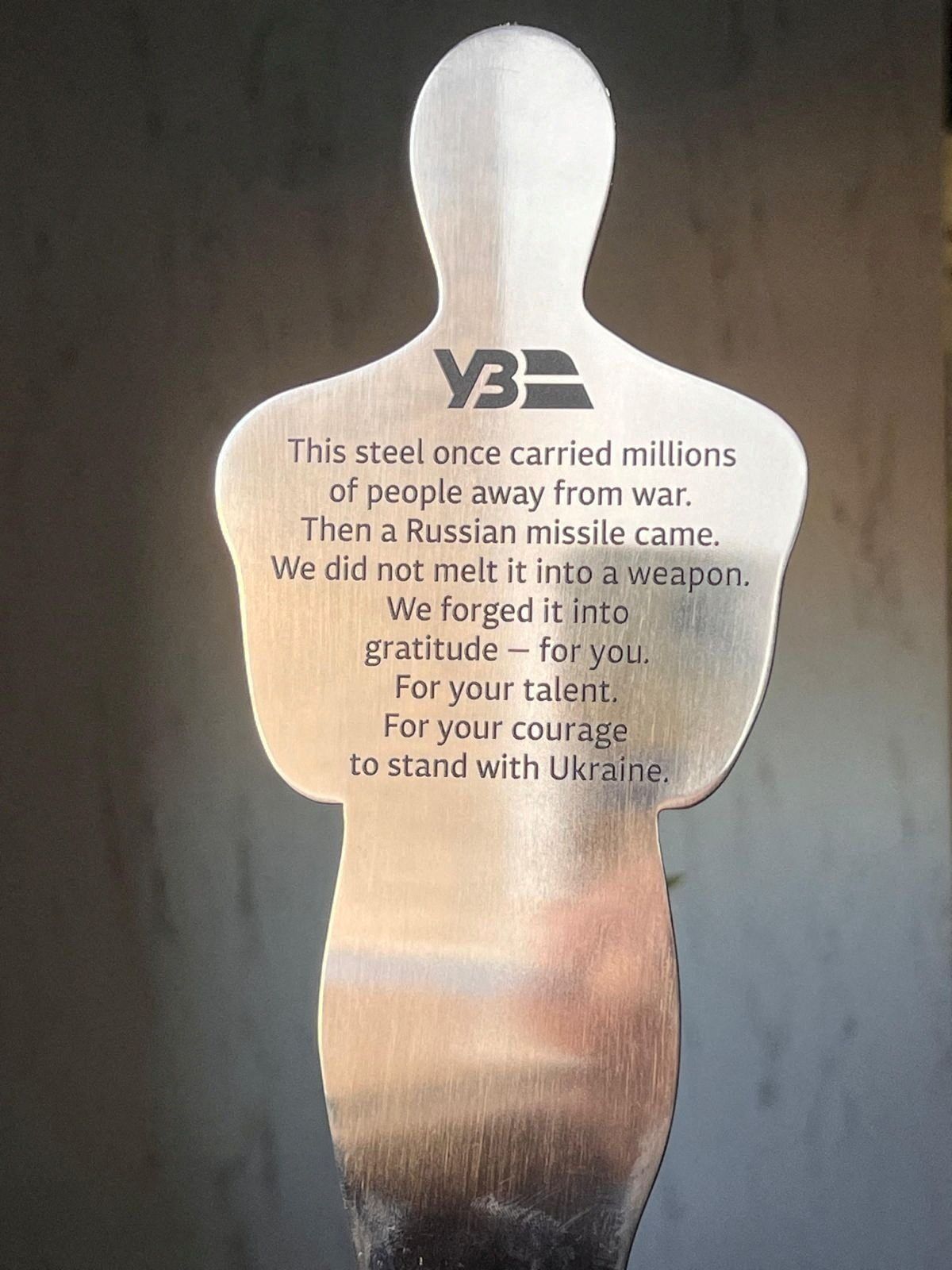 같은 영화로 남우조연상을 받아 연기상 3회 수상이라는 대기록을 세운 숀 펜의 빈자리도 묵직한 서사를 남겼습니다. <데드맨 워킹>과 <아이엠쌤> 때도 시상식에 불참했던 그는 이번에도 우크라이나로 향하고 있었습니다. 젤렌스키 대통령과 다큐멘터리 <슈퍼파워>를 만들고 자신의 첫 트로피까지 건넸던 그에게, 우크라이나 철도공사 CEO는 러시아 미사일 공격을 받은 철도 객차의 강철로 만든 트로피를 선물했습니다. 수백만 명을 대피시킨 강철을 무기가 아닌 감사의 징표로 만들었다는 뒷면에 새겨진 문구는 그 어떤 황금 트로피보다 빛났습니다.