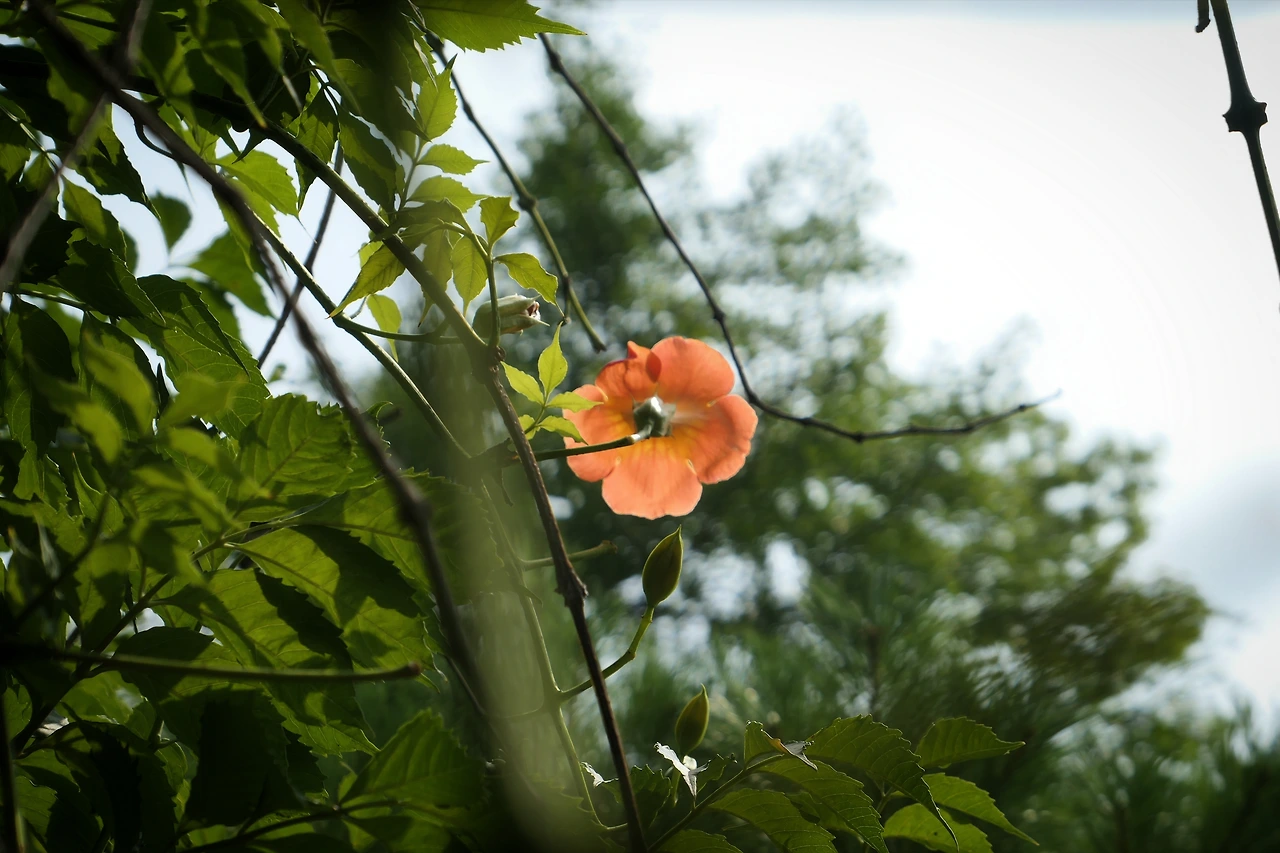 열꽃이 핀 자리는 흉 져 거뭇해진다. 많던 능소화들이 다 떨어지고 마지막 남은 자리이다. 흉 진 가지들엔 녹음과 열기가 자리를 메우고 한 여름을 받아내기 한창이다. 장마가 내릴 땐 그토록 해가 그리웠는데 막상 열기 받아내는 마지막 능소화의 뒷모습을 보고 있으니 안쓰러워 뒤를 받쳐주고 싶어졌다.