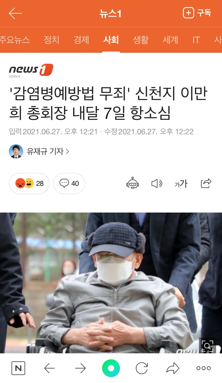 아니나 다를까 제일 최근 6/27에는 네이버 기사 신천지인 댓글에 좋아요가 눌러져 있는 걸 발견했다.