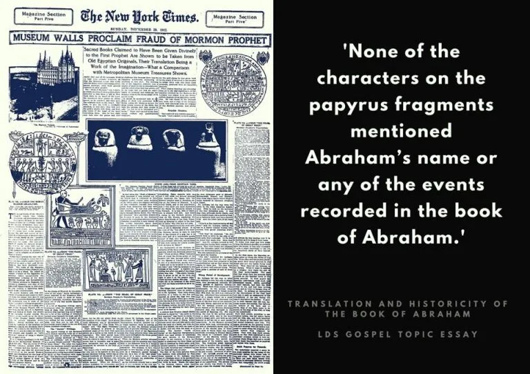 "(아브라함의 기록이라고 조셉 스미스가 주장한 몇 개의) 사본에 새겨진 고대 이집트 신성문자들 중에 아브라함의 이름커녕 아브라함서에 일어난 사거들마저 전혀 언급되지 않다." (예수 그리스도 후기성도 교회: 복음 에세이 출처)