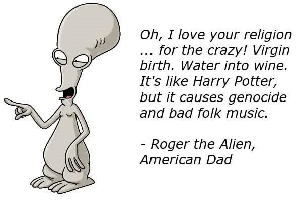 무하마드라는 선지자가 칼을 든 채 날개가 달린 말을 타고 날아가서 달을 반으로 잘랐다거나 몰몬교의 경우, 클롭이라는 먼 태양계에 사는 몰몬교의 신이 우리 태양에 에너지를 빌려 준다는 자신의 망상에 빠져 있는 이들이 내놓은 주장에 아무 과학적인 증거가 없음에도 불구하고 사실인 것처럼 전파하고 그 주장에 반박하는 회의주의자들에게 “너희들이 신을 부인하면 지옥에 떨어질 것이다. “라고 협박하고 미치광처럼 길거리나 인터넷에서 헛소리를 한다.