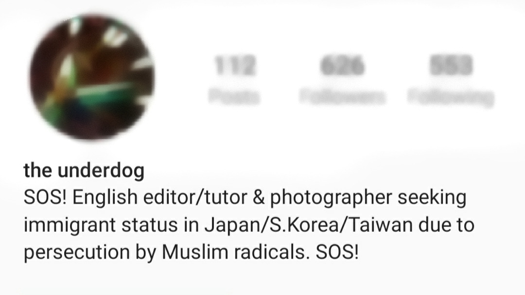 자신 스스로를 약자라고 일컬으며 무슬림들의 핍박을 받아 일본/한국/대만 중 이민 갈 곳을 찾는다고 써놨는데 서유럽 강대국만 고집하는 취업 난민들이 생각나는 이유는 뭘까? 등록금 비싼 인서울 S 대학교에 다니면서 비싼 시계 컬렉션만 모으는 그를 과연 사회적 약자라고 할 수 있는지 의문이 든다.