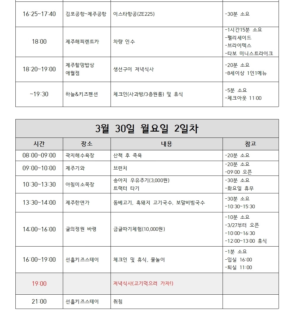 따라서 아내가 제주도 여행을 가고 싶다고 말했을 때 나는 선뜻 좋다고 대답할 수가 없었다. 더군다나 손이 많이 가는, 자기주장과 고집이 날로만 늘어가는 첫째를 데리고서, 게다가 7월에 출산 예정인 둘째 또한 뱃속에 품고서 말이다. 혹시나 첫째가 크게 다치면 어떡하지? 아내가 갑자기 통증을 호소한다면? 넓은 집으로 이사도 가고 싶고 차도 큰 걸로 바꾸고 싶은데 또 여행이랍시고 노는 것에 돈을 써야만 하는 것도 내키지 않았다.