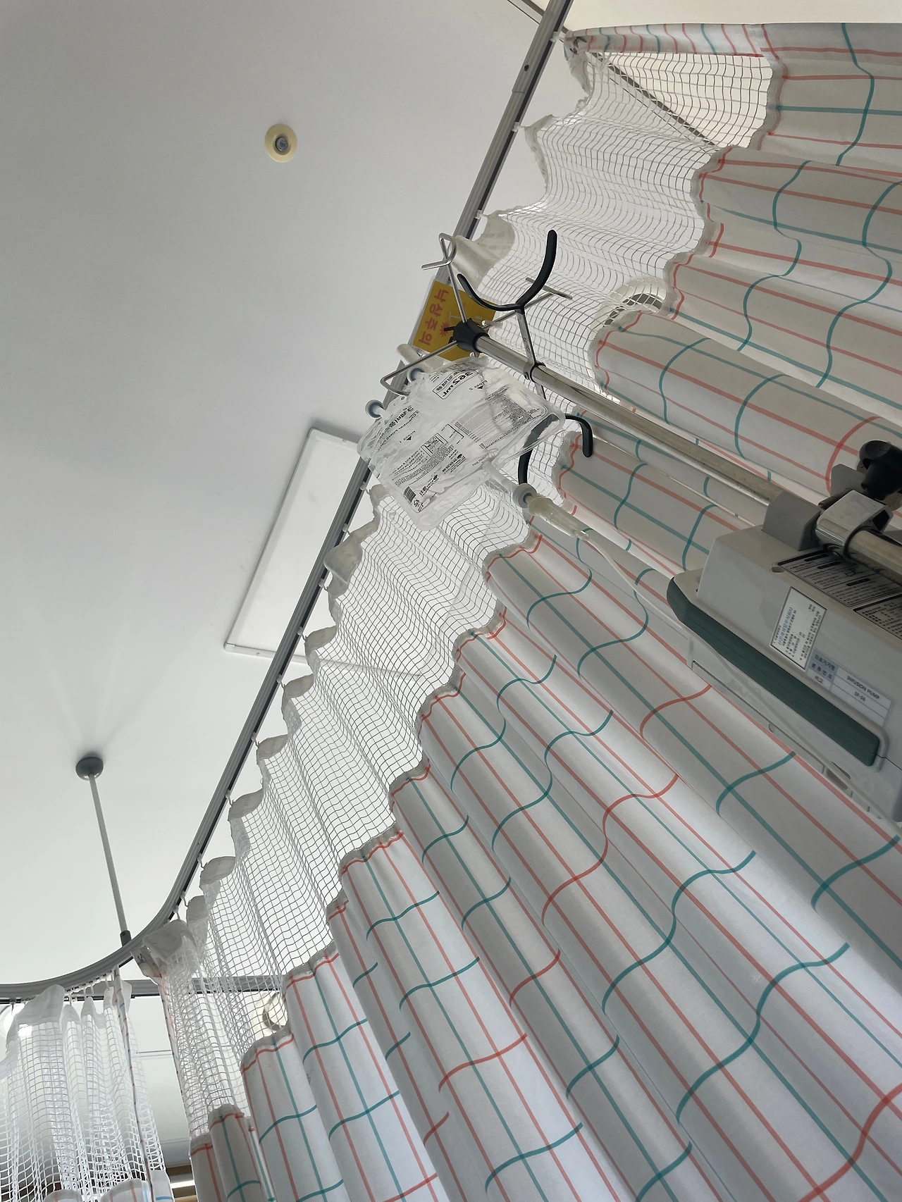 아내가 소파술을 받을 당시 병상에 누워 찍은 사진. 들려오는 신생아의 울음소리를 외면하기엔 커튼은 얇고 천장은 휑하다.