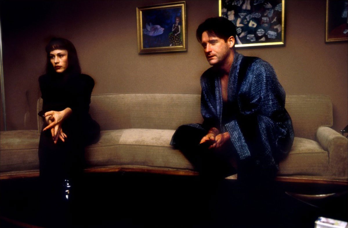 린치의 에세이집 제목이기도 한 ‘빨간 방’은 다양한 층위의 함의를 담고 있다. 극장을 떠오르게 하기도 하고, 꿈 속의 공간 같기도 하다. (그의 영화에서 꿈-망상-영화가 그 경계를 모호하게 흐린다는 점을 떠올리면 ‘극장’이라는 다소 단정적인 비유가 오히려 효율적일 수도 있겠다.) ‘로스트 하이웨이’에서도 빨간 방은 어김없이 등장한다. 엄밀히 말하자면 빨간 방처럼 보이는 공간이지만 말이다. 복도와 방 사이에 문이 달려있지 않고 그 사이를 붉은 커튼이 관통하는 이상한 집의 구조 덕분에, 프레드와 그의 아내가 침실로 들어가는 것이 관객들에게는 마치 그들이 붉은 커튼으로 쌓인 비밀의 방으로 들어가는 것처럼 보이는 것이다. 그리고 프레드는 이 공간을 여러 차례 통과한다. 즉 극장을 여러 번 들락거린다. 그리고 이 들락거림을 카메라는 모호하게 포착한다. 극장으로 들어가고 나오는 행위는 꿈으로 들어가고 나오는 행위, 망상으로 들어가고 나오는 행위 와도 연결된다. 망상으로 들어가고 나오는 과정을 모호하게 반복함으로써 그 둘을 구분하는 게 의미 없음을 영화는 말한다.