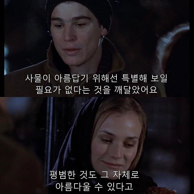 시카고를 배경으로 하는 ‘당신이 사랑하는 동안에’라는 영화에서 주인공 매튜(조시 하트넷 분)가 첫눈에 반한 리사(다이앤 크루거 분)와 공원을 거닐며 건네는 한마디다.