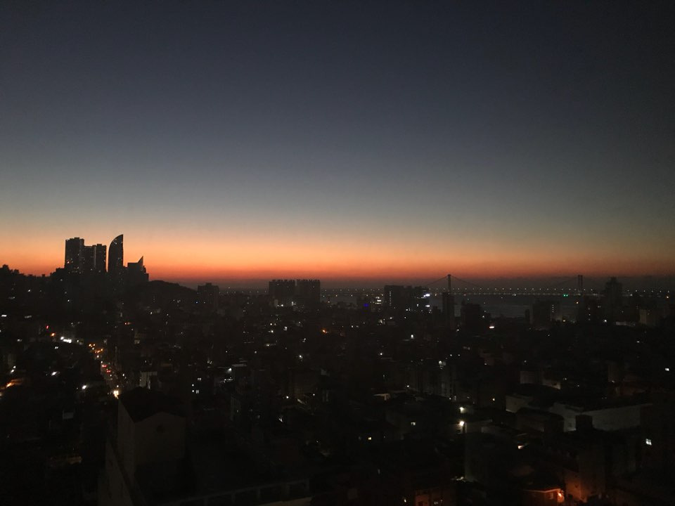 2017년 마지막 일몰은 타투를 시술받느라 싱겁게 놓쳐 버렸다. 2017년 12월 31일에서 2018년 1월 1일로 넘어가는 그 순간, 숙소 옥상으로 잠깐 올라가 카운트다운을 마쳤다. 저 멀리 광안대교 언저리에서 폭죽이 터졌다. 광안대교에 'Happy New Year', '새해 복 많이 받으세요' 따위의 문구가 새겨졌다.