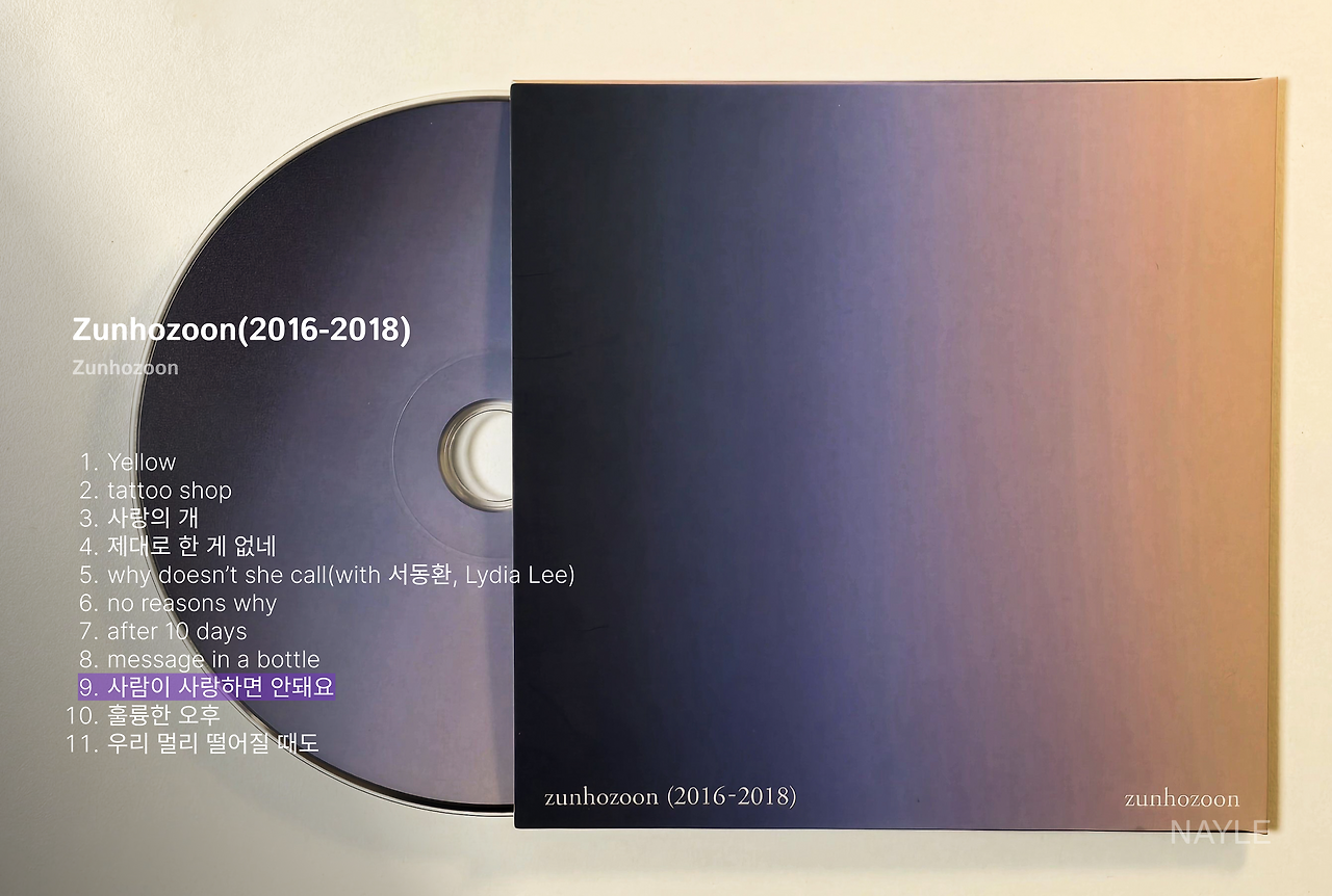Zunhozoon(2016-2018)은 총 11개의 트랙으로 이루어져 있다. 앨범이 가장 맛있는 순간은 앨범을 통째로 듣는 것이다! 하지만 시간이 없는 사람들을 위해서 Zunhozoon의 가장 베스트셀러인 9번 트랙이자 이번 앨범의 타이틀 곡인 '사람이 사랑하면 안 돼요'를 추천한다. 그리고 이 앨범은 여름밤에 습한 바람을 맞으며 듣는 게 제일 맛있는 것 같다.