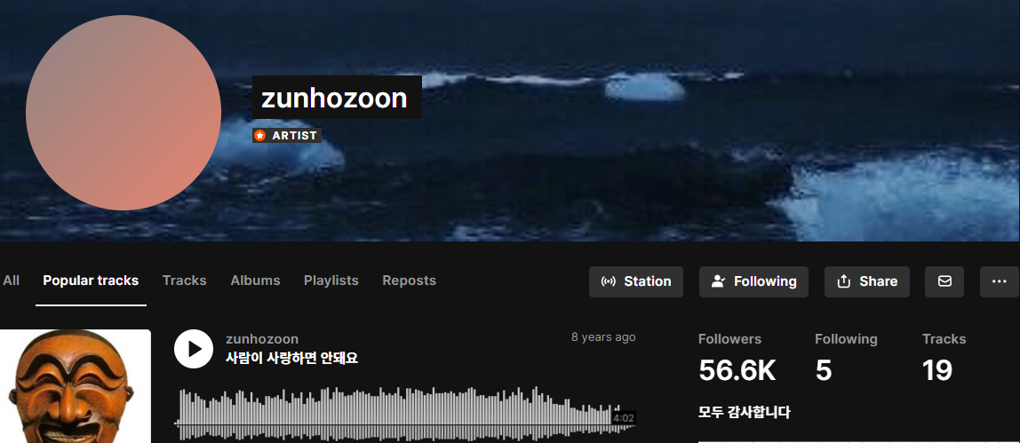 주로 사운드클라우드에서 활동하는 그는 팔로워 56.6k(566,000)을 거느린 만큼 사운드클라우드에서는 꽤 유명하다. 사운드클라우드는 독일의 음원 스트리밍 플랫폼인데 주로 아마추어들이 자작곡을 올리는 사이트로 아마추어 아티스트들에게 관심이 있다면 한 번쯤 들어가 보는 것을 추천한다. 어쩌면 당신의 취향을 저격하는 아티스트를 발견하게 될지도 모른다.