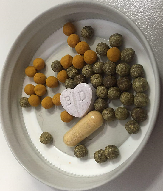 강황 환 10알 (양배추 환보다 약간 더 크다. 그래서 목넘김이 확실히 느껴진다.)
