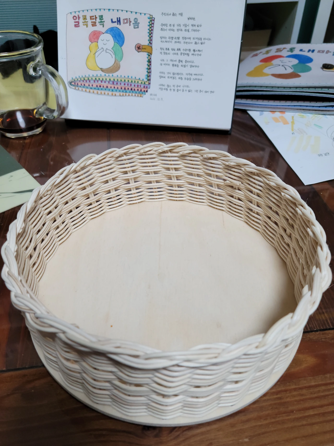 최근에는 코로나19로 인한 격무에 시달린 교사로 추천되어 마음 회복(?) 연수에 갔다가 라탄 바구니 공예를 처음 해봤다. 얇은 등나무 끈을 물에 불렸다가 순서대로 엮으니 금세 바구니가 완성되었다. 바늘이나 송곳이 필요 없고 맨손으로 가능하다. 재능 여부를 떠나 누가 만들든지 결과의 차이가 크지 않고 노력만 하면 그럴싸한 만듦새를 모두에게 안겨주는 라탄 공예가 마음에 들었다. 만들기가 복잡해서 소수의 아이들만 성취감을 맛보고 재능이 부족하거나 끈기 없는 아이들이 소외되지 않는 제작방식이 평화롭고 대단해보였다. 모든 학생들을 포섭할 수 있고 만드는 법이 안전해서 반 아이들과 해봐야겠다는 생각을 안고 돌아왔다.