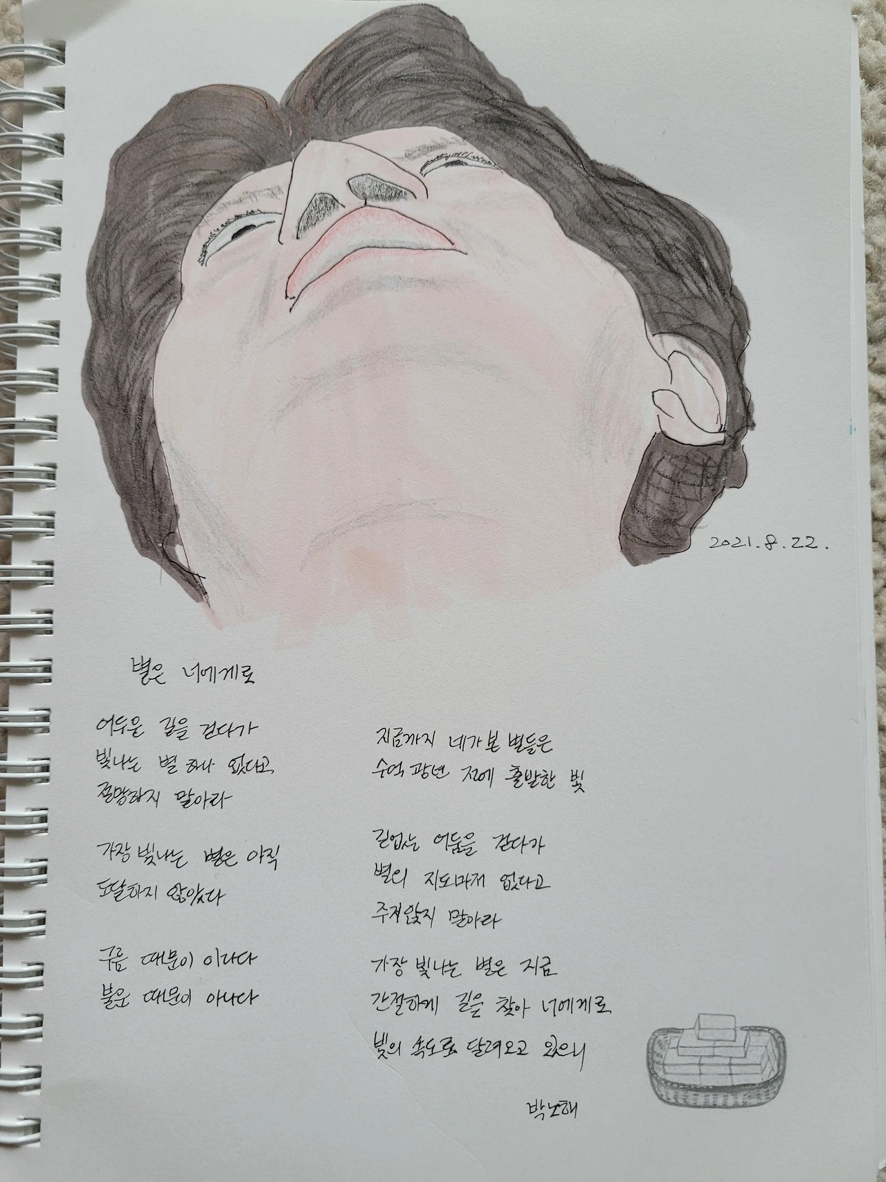 며칠만에 집에 와서 잠을 자는 것도, 쉬는 것도 아닌 듯 너는 그렇게 있었다. 자꾸 불안해져 숨을 쉬는지 확인하고 싶어졌다. 너의 목 주름 아래 피부의 파동을 보고있으니 녹조류 덮인 강에서 수면위로 뻐끔거리는 절박한 물고기처럼 숨쉬는 것조차 숙제가 된 것 같았다. 부드럽고 여린 가슴이 사포처럼 변하는 너를 안아주는 것 외에 나는 해줄 것이 없지만..우리 기다리는 마음으로 길없는 어둠을 헤쳐가보자.