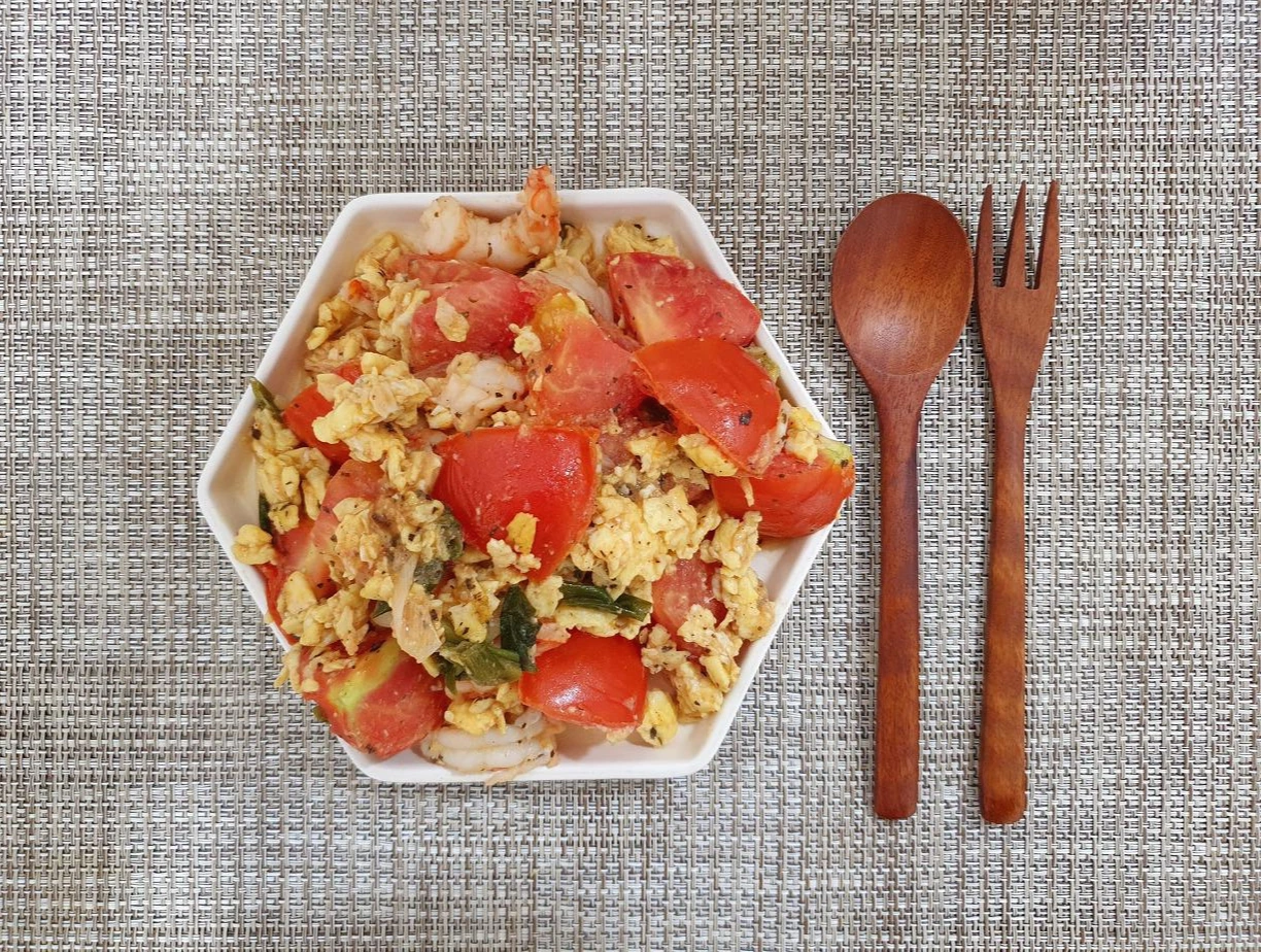 '토달볶(토마토 달걀 볶음)'이라고 줄여서 부르기도 한다. 계란은 부드럽게 스크램블 에그로 만들었다. 파를 먼저 볶고, 먹기 좋게 자른 토마토와 새우를 함께 넣어, 굴소스를 메인으로 해서 볶았다. 집에 냉동 새우가 남아 있어서 넣어보니, 맛이 더욱 풍부했다. 함께 넣은 부재료에 따라서 감칠맛이 달라져서 좋다.