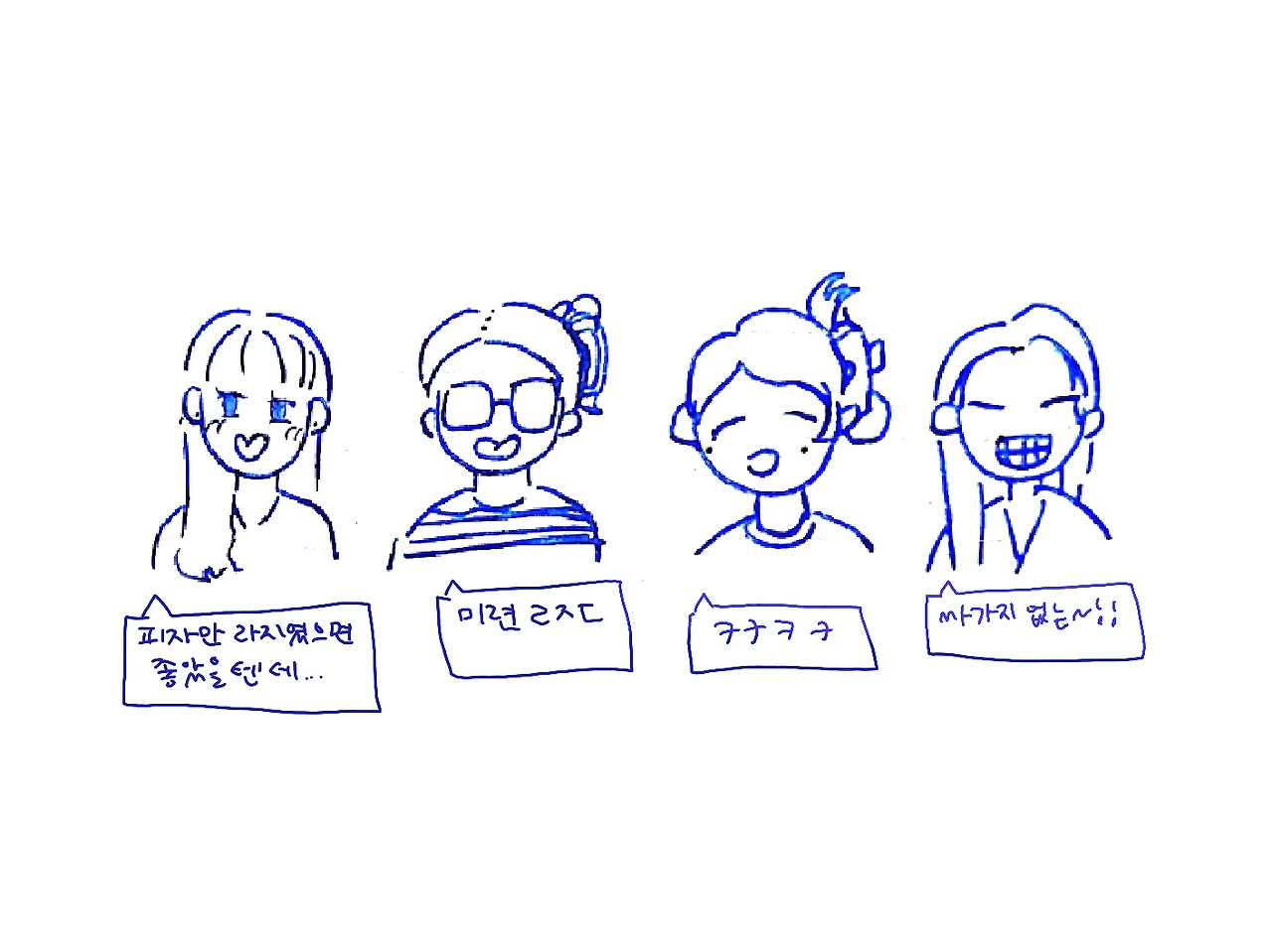 지금이야 손끝이 떨어질 것처럼 춥지만 우리가 4인조 체제로 처음 만난 건 언덕을 오르면 땀이 삐질거리는 여름이었다. 지나다니면서 눈으로만 보게 되던 중화요리 가게에서 호두와 만두를 만났고, 우리는 식사 후에 카페로 이동해서 내 글에 대한 이야기를 나눴다. 자리에 앉자마자 둘은 나란히 아이패드를 꺼내더니 한줄한줄 정성스럽게 첨삭한 필기 파일을 꺼내어 설명했다. 나는 민망하게도 아이패드 없이 내가 쓴 글의 인쇄본과 볼펜 하나 덜렁 꺼낸 채로 그들의 말을 곱씹었다. 정중하고 정성스러운 둘의 피드백 사이에서 나는 그녀들에게 완전히 감겼다. 만두,호두, 박스타와 나 이루어진 네사람은 너무 잘맞았다. 안젛은거 없이 너무 좋은 날이 이어졌고 우리 굉장히 많은 날들을 함께하기 시작했다.
