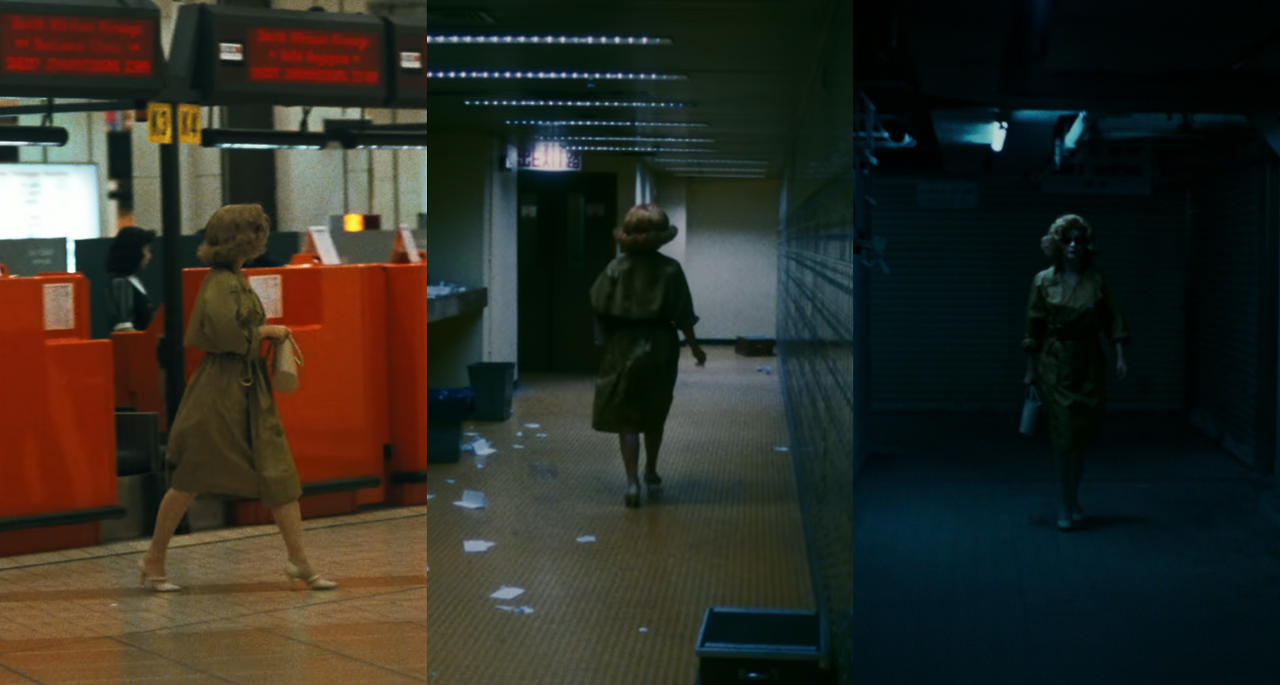 비로소 레인코트가 어울리게 비가 내리는 날, 페이는 캘리포니아 바에 앉아 있다. 그간 현실의 흐름을 말하듯, 그녀 주변 사람들의 실루엣이 빠르게 움직인다.