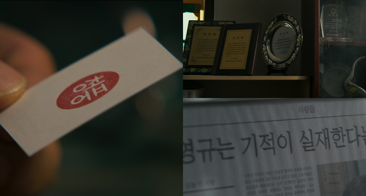 이 미적 판단이 관객의 주관적 느낌만은 아니다. 각종 표창과 공로패, 신문기사는 그가 시각 장애에도 불구하고 경지에 오른 명인이라는 사실을 부각한다. 영화 내에서 그의 도장은 단지 실용 도구가 아닌 하나의 공예품으로 예술적 가치를 인정받고 있다.
