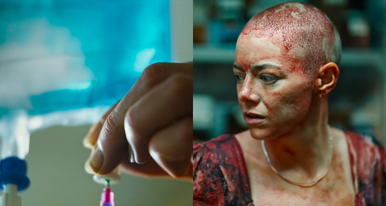 그렇다면 썩은 사체(물질)에서 꿀벌을 잉태해 내려했던 이 고대인들의 맹목적인 '관념'은, 영화의 내용과 도대체 어떤 관계가 있는 것일까? 우리는 그 해답을 좁은 지하실에서 충돌하는 두 주인공, 테디 게츠(제시 플레먼스)와 미셸 풀러(엠마 스톤)의 처절한 대립을 통해 풀어볼 수 있다.