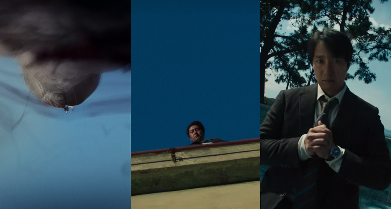 첫째, 영화 초반 카메라는 이미 죽은 기도수의 탁한 시선을 빌려 암벽 정상에서 아래를 내려다보는 해준을 올려다본다. 둘째, 홍산오가 투신해 죽었을 때도 옥상에 선 해준을 향해 초점을 잃은 주검의 눈동자가 똑바로 향해 있다. 마지막으로 해준은 물 빠진 수영장 벽에 기댄 채 죽어 있는 임호신의 텅 빈 시선에도 꼼짝없이 붙들리고 만다.
