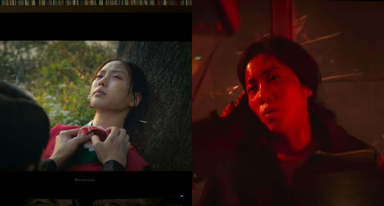 영화 『헤어질 결심』에는 서래가 텔레비전을 통해 영상을 응시하는 장면이 두 차례 등장한다. 첫 번째는 해준과 대면한 직후로, 사극 속 무녀가 죽어가는 장면을 보며 유명한 "내가 그렇게 나쁩니까?"라는 대사를 되뇌는 씬이다. 두 번째는 해준과 결별 후, 다시 그를 만나기 위해 이포로 향하기 전이다. 화면 속에선 원자력 사고 현장에서 죽어가는 여자가 등장하고, 서래는 "당신 만날 방법이 오로지 이것밖에 없는데 어떡해요"라는 대사를 그대로 따라 한다.