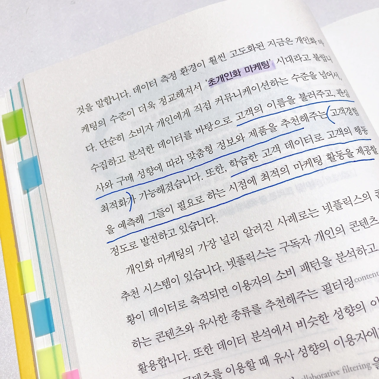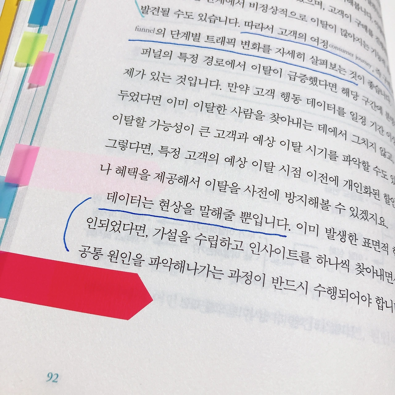 전반적으로 다 좋아서 라벨이 안 붙은 곳이 없었기 때문에, 제가 느끼기에 인상 깊었던 파트에 대한 감상 위주로 작성해 보았어요. 특히 이 책이 우리의 마케팅 활동에 어떤 변화를 줄 수 있는지, 합리적인 마케팅 의사결정에 어떤 인사이트를 줄 수 있는지 가 정말 좋아서 관련된 내용도 적어보았습니다.