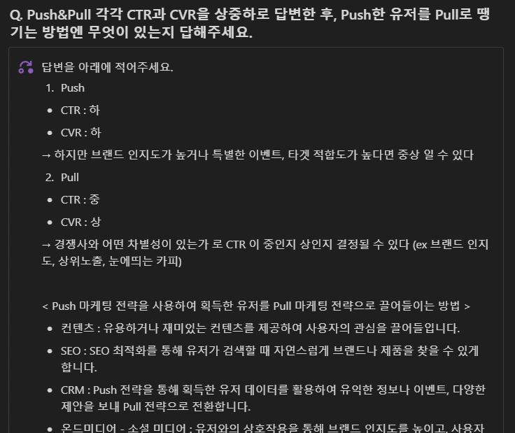 지금보니까 열심히는 썼는데, (또 저게 맞나 싶기도하지만) 결과적으로 푸시 마케팅과 풀 마케팅을 적절히 활용해야 자연스럽게 유저를 확보할 수 있지 않을까 싶습니다.