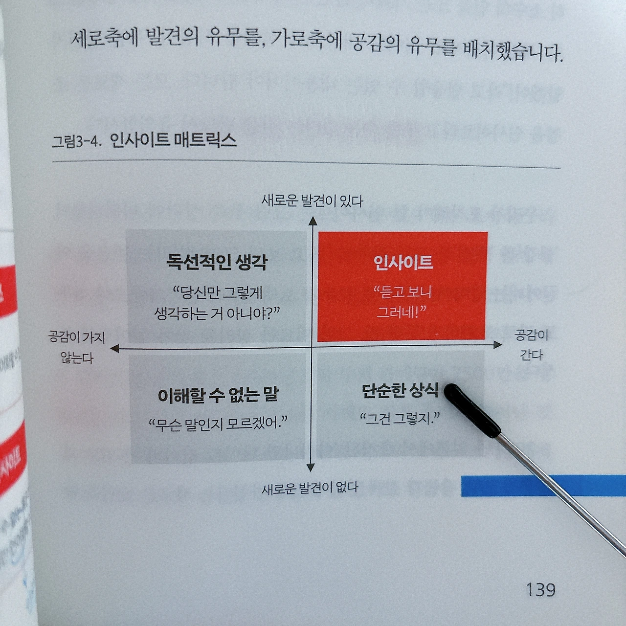 이 책의 가장 좋은 점은, 모호하게 쓰이던 개념들을 구체적이고 쉽게 설명한다는 것이다. 니즈와 인사이트를 구분해 설명한 부분은 특히 인상 깊었다.