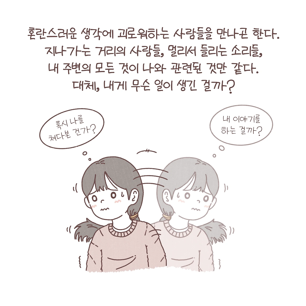 망상이라는 단어를 들어보신 적이 있나요? 현실과는 어딘가 조금 동떨어진 생각들을 뜻하는 단어죠. 누군가 내게 해를 입힐 것만 같은 피해망상, 모든 것이 나와 관련이 있는 것 같은 관계망상, 내가 대단한 사람이 된 것만 같은 과대망상 등 그 내용에 따라 종류를 분류하기도 합니다. 이렇게 나를 괴롭히는 혼란스러운 생각들은 대체 어디서 온 걸까요? 망상이라는 증상의 발생 기전은 아직 명확히 밝혀지지는 않았습니다. 여러 가지 가설이 존재하고, 최근에는 다양한 연구를 통해 도파민과 세로토닌 같은 신경전달물질들의 불균형이 그 원인이 된다고 알려져 있어요.