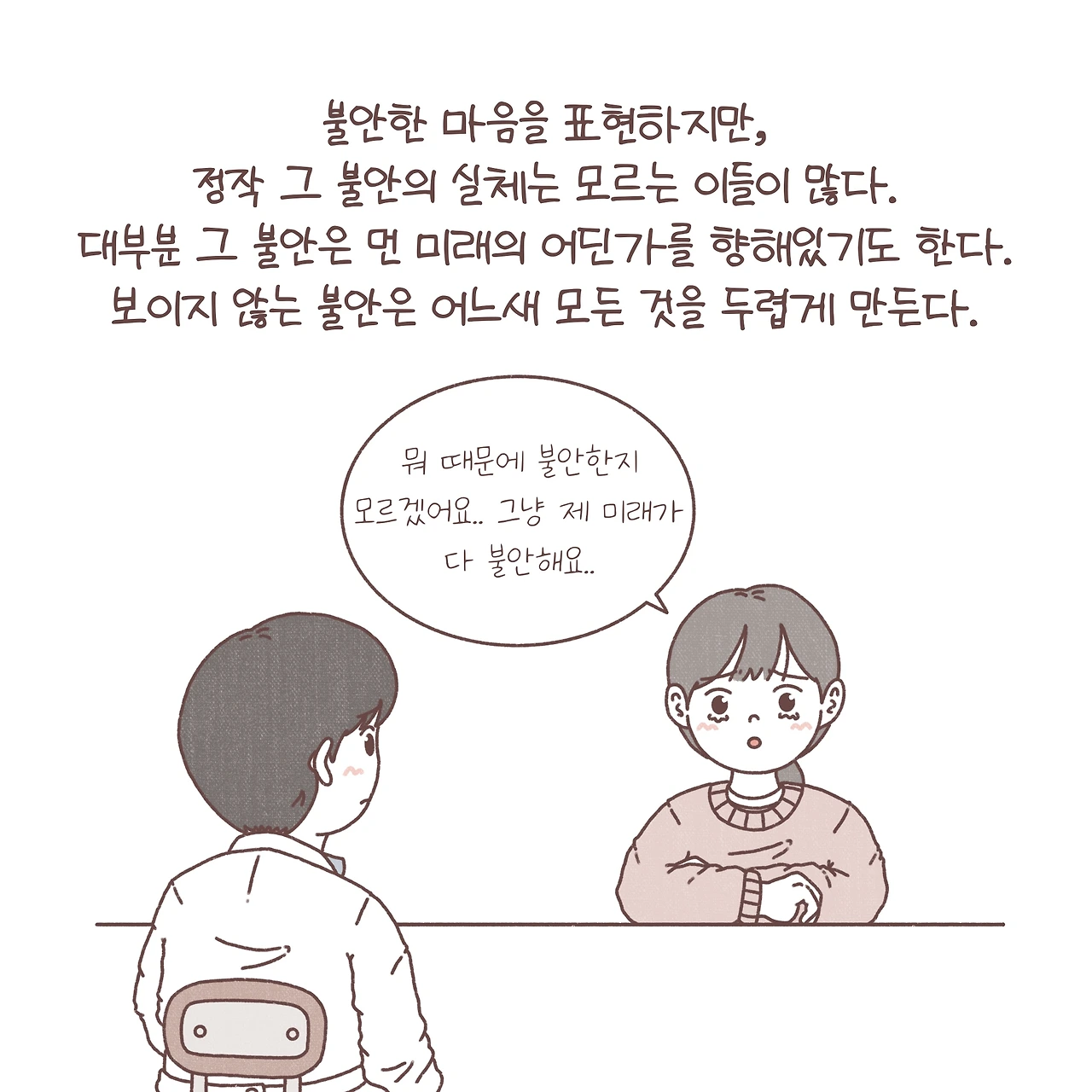 언젠가 당신을 떠나가는 불안에게 환히 웃으며 손을 흔드는 모습을 상상하며, 지치고 힘들더라도 씩씩하게 오늘을 그려가는 당신에게 응원과 용기를 전합니다.