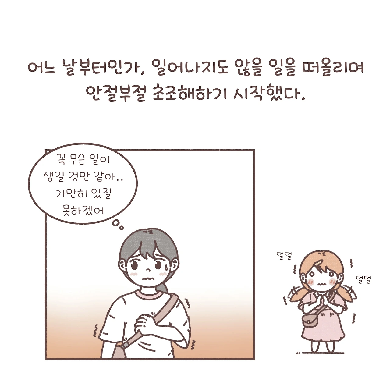 직장 동료의 권유로 진료실을 찾은 A씨는 무슨 말을 꺼내야 할지 망설이는 표정이었습니다. 고민 끝에 A씨는 요즘 아무 일도 없는데 마음이 너무 바쁘다는 말로 침묵을 깼습니다. 가만히 있어도 가슴이 뛰고, 손바닥에는 식은땀이 맺히던 날들. 떨리는 다리를 진정시키려 애를 쓰는 A씨를 보고 주변 사람들은 무슨 일이 있냐고 묻지만, 특별한 일이 없다는 사실이 A씨를 더 두렵게 만든다는 이야기였죠. 상담이 끝나고 집에 돌아가는 길, ‘나는 조금 예민해진 것뿐인데...’ 우울증이라는 낯선 단어가, A씨의 마음을 더욱 복잡하게 만들었습니다.