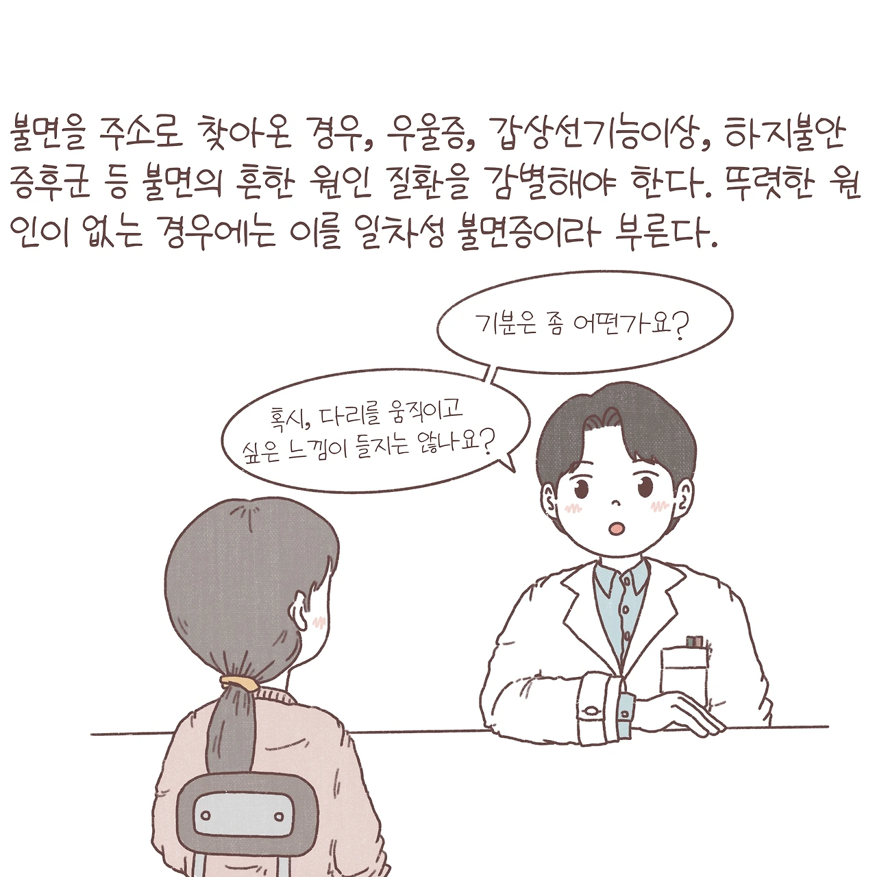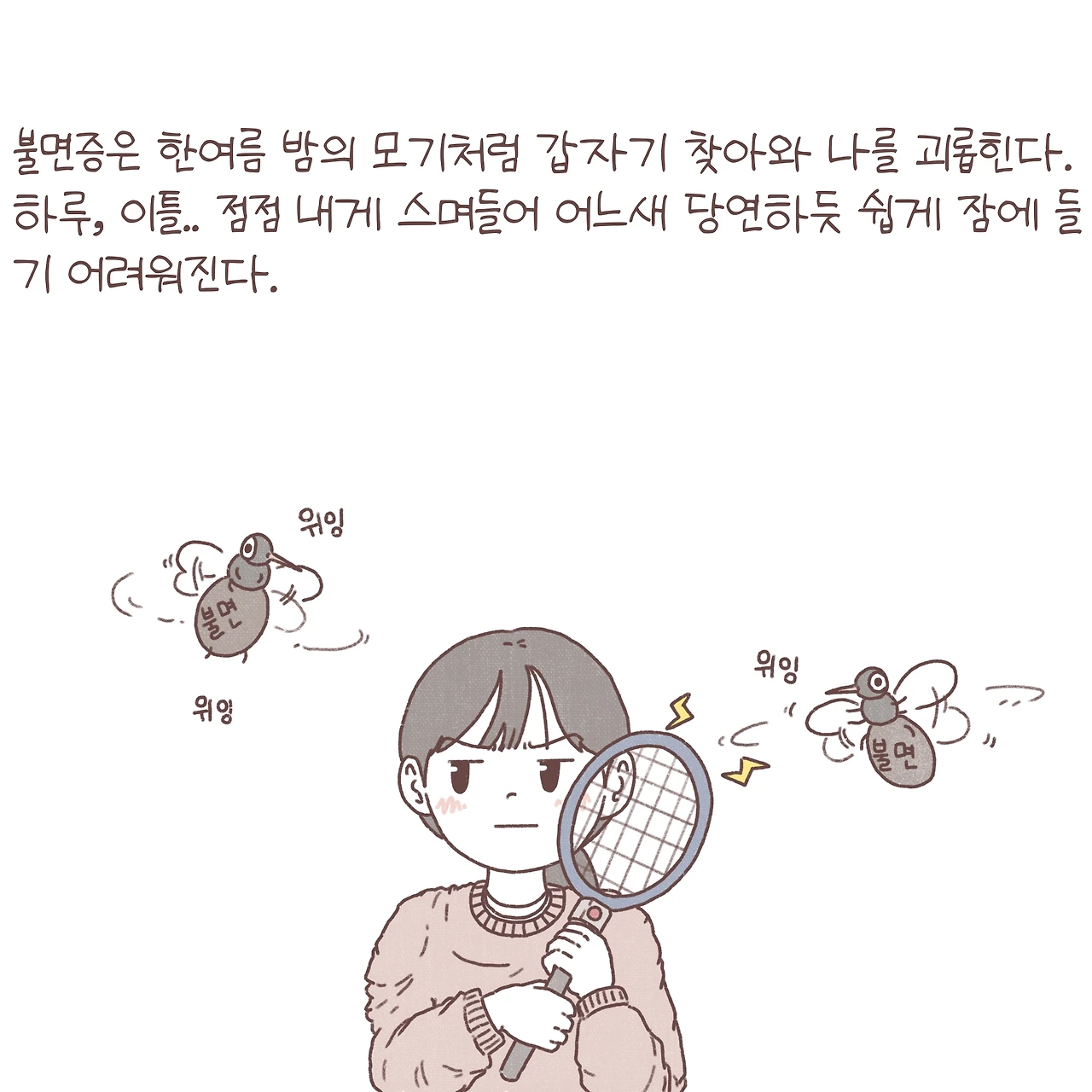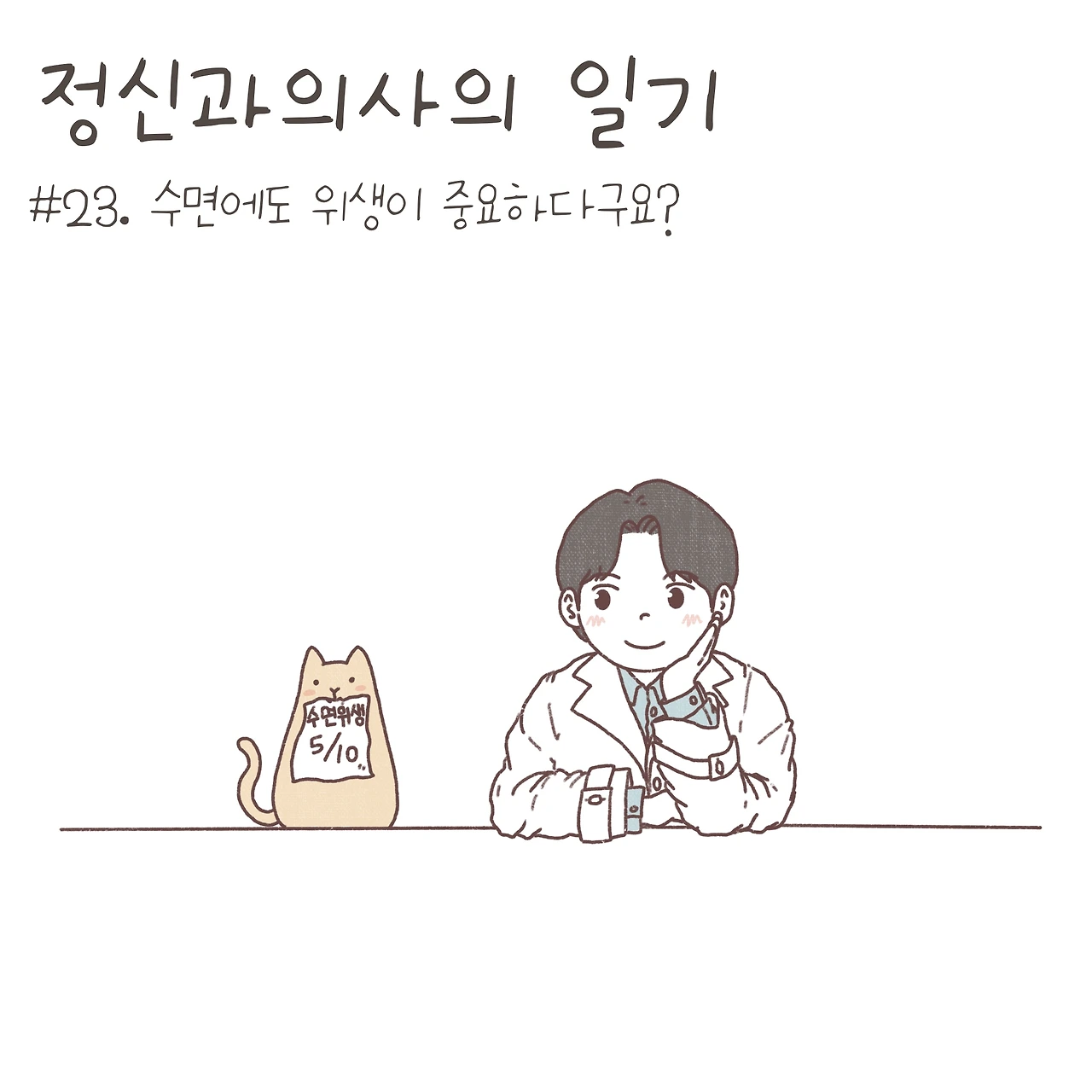 지난밤에는 왠지 모르게 잠을 설친 것 같네요. 대부분 한 번쯤은 불면증으로 고생했던 경험이 있을 것 같습니다. 간혹, 불면증이 일상에 영향을 줄 정도로 심해져서 진료실을 찾는 분들이 있어요. 원인을 파악하고, 원인 질환을 교정하거나 수면도입을 돕는 약제와 인지행동치료 등 상담치료를 통해 치료적 접근을 하곤 합니다. 모든 경우에 꼭 설명하는 것을 꼽자면 수면위생을 고를 것 같아요.
