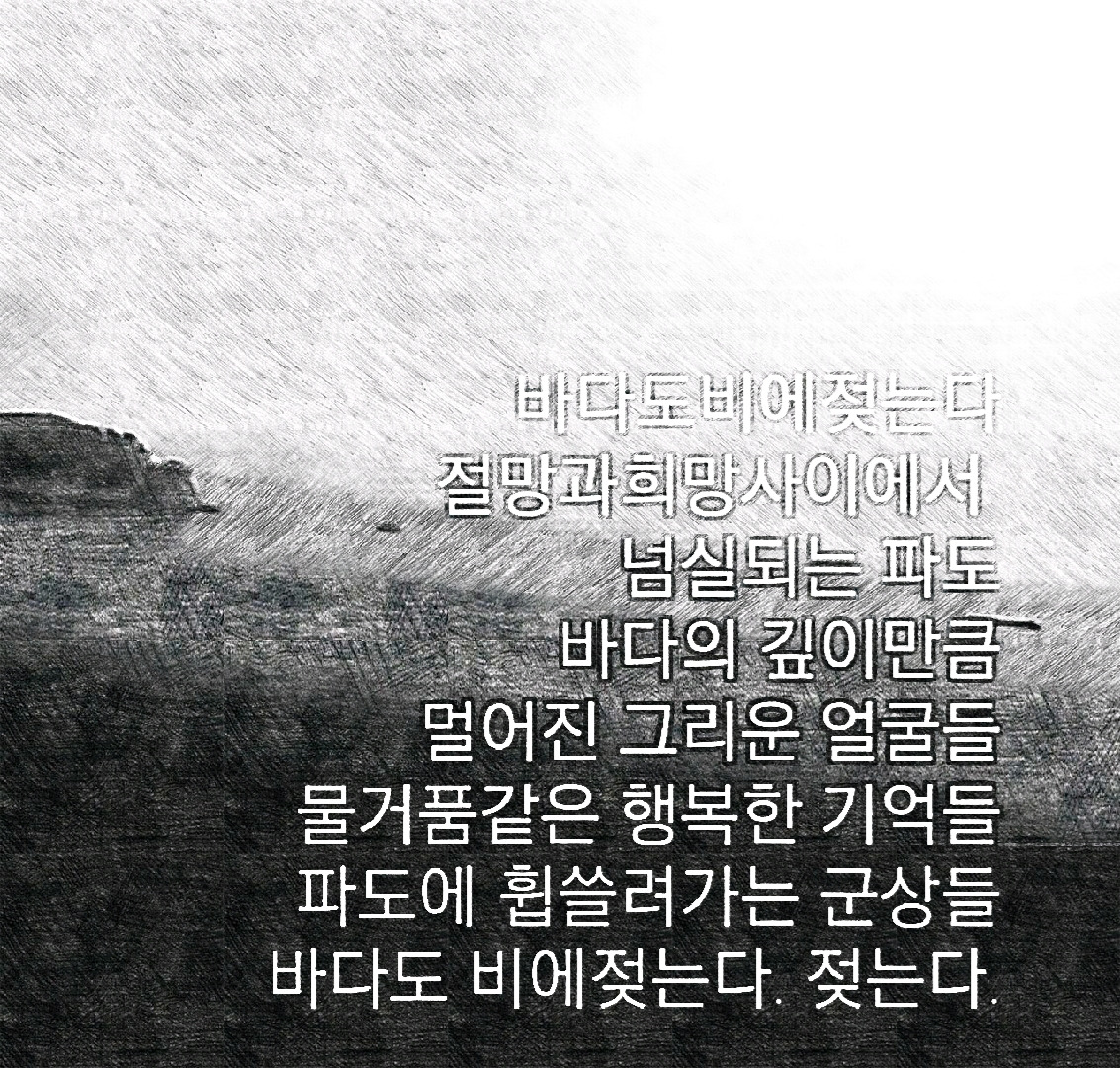 추신-바다도 비에 젖는다는 어떤 의미인가. 비에 젖은 자는 더 이상 비를 두려워하지 않는 것은 명약관화한데. 비 맞은 중처럼 중얼거리는 것이다. 바다도 비에 젖는다. 아버지가 보셨으면 호통치셨을 것이다.