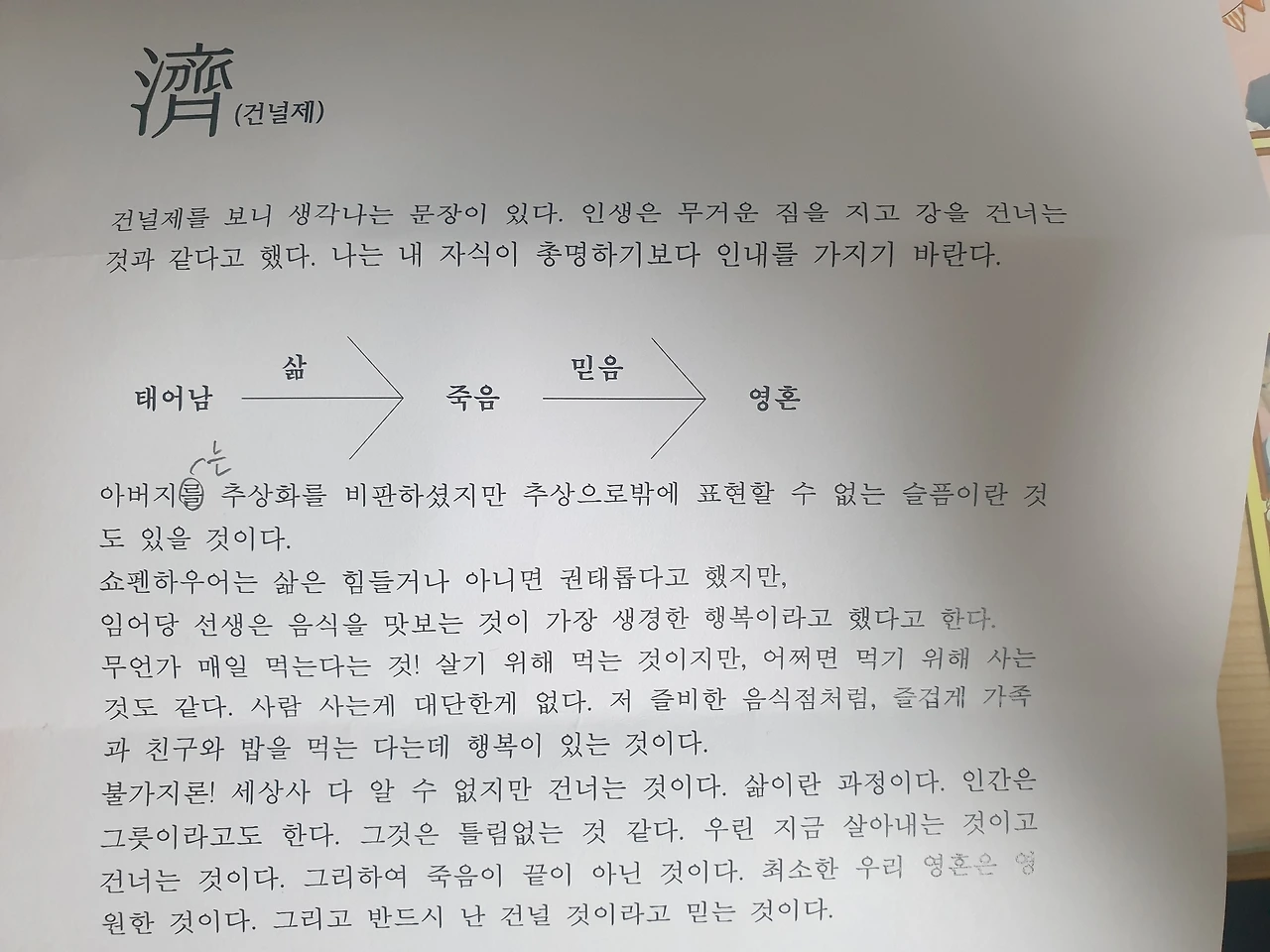 건널제를 보니 생각나는 문장이 있다. 「인생은 무거운 짐을 지고 강을 건너는 것과 같다고 했다. 나는 내 자식이 총명하기보다 인내를 가지기 바란다.」