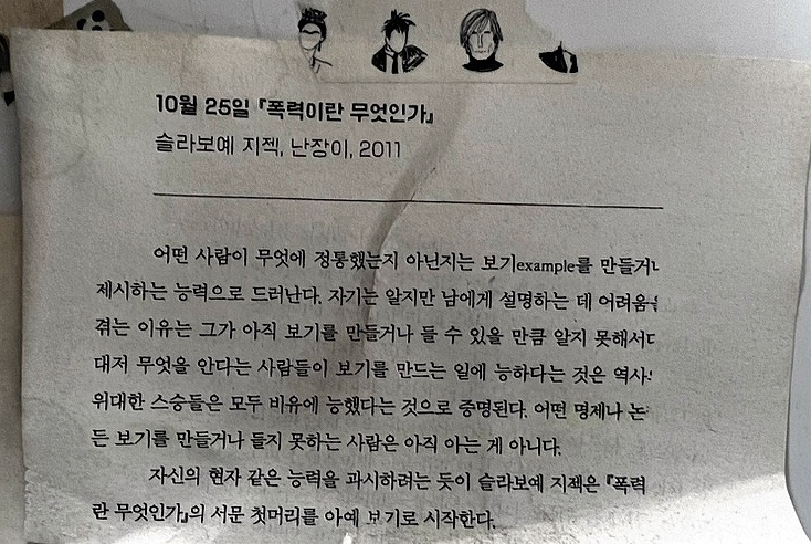 장정일 아저씨는 앎과 모름에 대해서 의견을 덧댔지만...나는 예시를 드는 패턴을 눈여겨 보는 것이야 말로 신뢰할 수 있는 인간을 분별하는 지혜라고 봐. 사람은 절대 완벽하지 않아. 특히 지식에 있어서는 허술해. 다 알고 있다 생각하는 것도 사실 느슨하게 알고 있을 수도 있어. 전문가도 가끔 잘못된 정보를 진술할 수도 있지. 중요한 건 자기가 아는 걸 얼마나 타인에게 성실하게 설명하려고 노력하느냐. 이게 핵심이야.