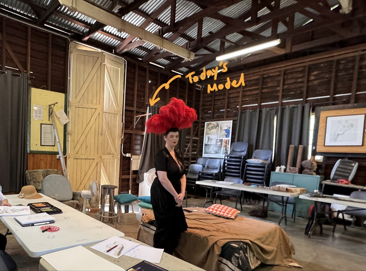 가운데는 밝은 얼굴에 예술적인 화장을 하고 머리에 화려한 붉은 깃을 꽂은 키가 큰 모델은 우리를 보고 활짝 웃는데 인상이 좋더라. 잠시 후에 검은 가운 같은 원피스를 벗는데 내가 더 긴장되더라. 모델이 옷을 벗고 스테이지에 올라가는 동안, 삼면으로 둘러싼 스무 개가 넘는 눈동자가 모델의 동작 하나하나에 집중하고 있었어. 어느 누구도 숨소리 하나 내지 않고 선풍기 몇 대만이 그 정적의 시간을 깨우고 있었어. 모든 시선이 자신에게 집중되고 있다는 걸 아는 모델은 조금 긴장하는 듯 보였지만 침착한 미소를 유지한 채 자세를 잡기 시작했어. 많은 이들 앞에서 누드로 있다는 부끄러움은 온전히 내 몫으로 느끼며.ㅎㅎㅎ. 호스트가 곧 시작 타임을 알렸고 하얀 피부의 육감적이고 프로페셔널한 모델의 포즈를 감상할 틈도 숨 쉴 틈도 없이 눈과 손을 움직여야 했어.