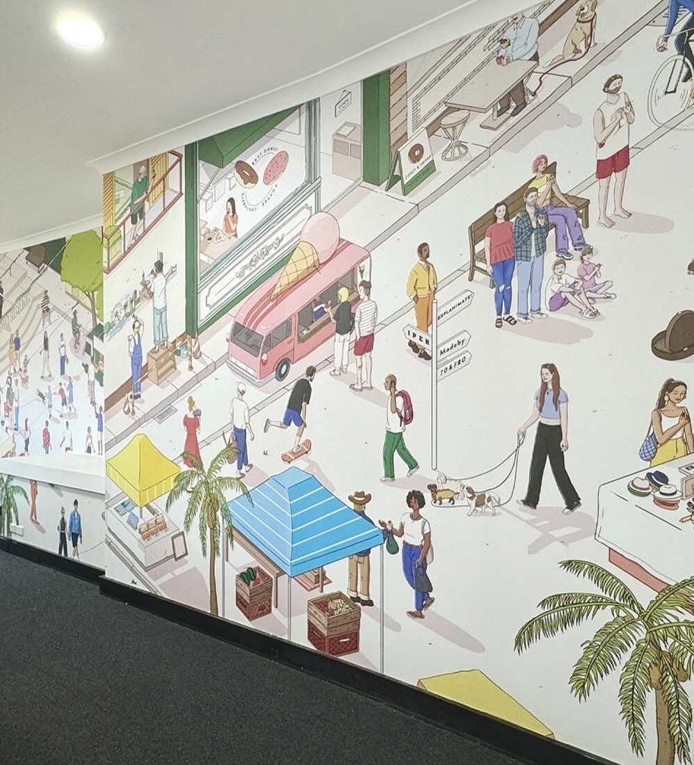 "노노..." 나도 꼭 필요한 거라면 가격을 따지지 않고 사지만 굳이 필요하지 않은 것에는 마음을 두지 않는 거 같아. 해질 무렵까지 돌아다니다가 집으로 오는 길에 애나의 회사에 들르기로 했어. 딸이 근무하는 사무실 작업환경도 보고 애나의 벽화작품도 보았어. 우리 딸이 먼 이국 땅에 와서 낯선 이들과 경쟁하며 살아내는 것이 기특하여 콧등은 시큰해지고.