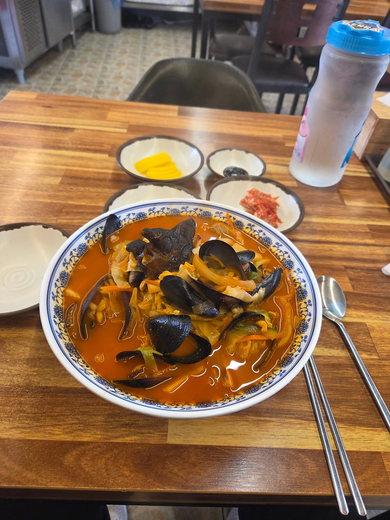 목욕을 마치고 위 사진 속, 입구로 나와 길을 건너 아래로 걸었다. 소원 김밥, 영진 횟집, 삼무 뚝배기 갈치(간판이 "저 맛있어요~ 오세요." 날 불렀다. '다음에 올 게... 오늘은 만강 탕수육 다시 먹는 날. 쏘리.')