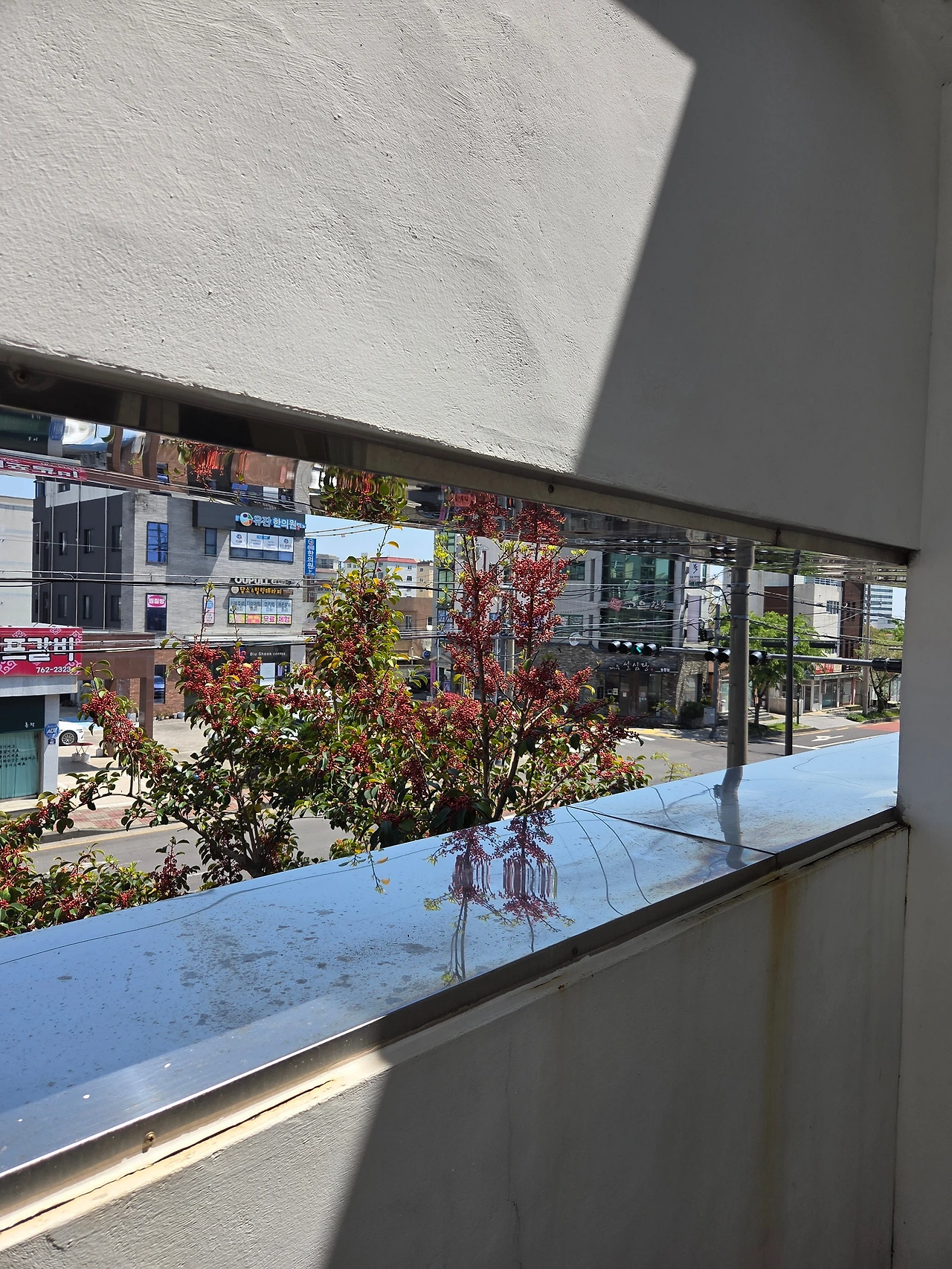 숙소 베란다 틈새로 보이는 바깥세상의 날씨가 너무 좋았다.