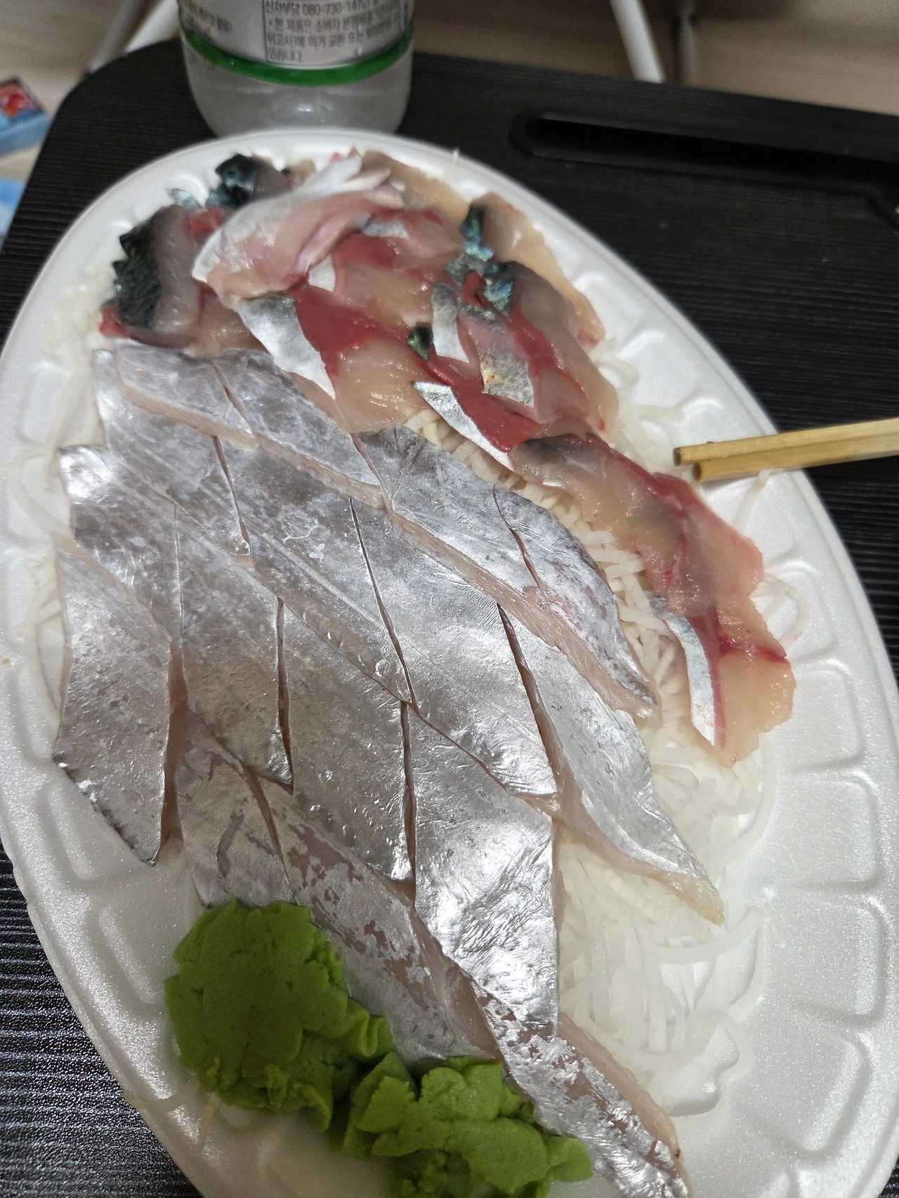 <이것도 먹다가 뒤늦게 생각나서 찍었고만,,, 고등어, 갈치 두 점씩 빠진것 좀 봐....>