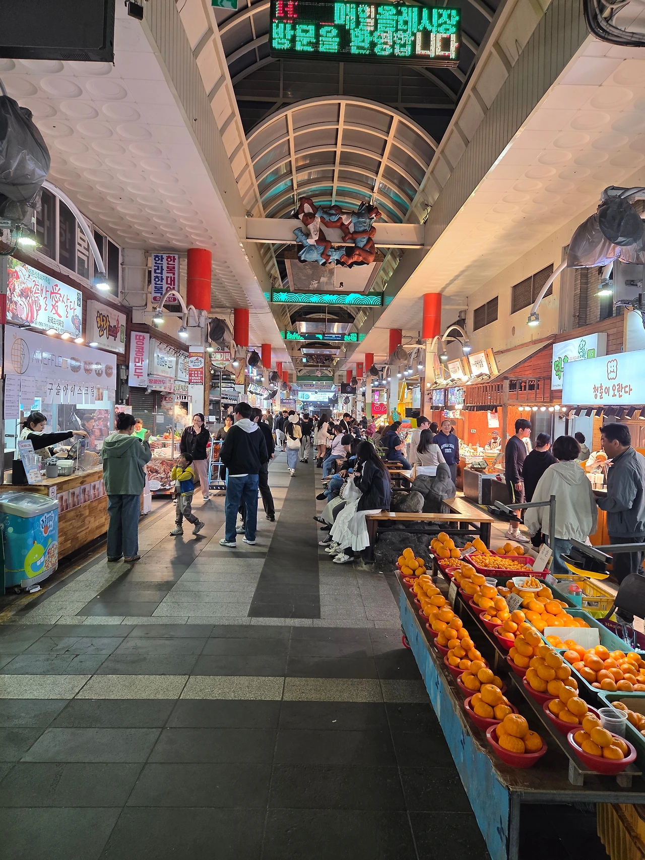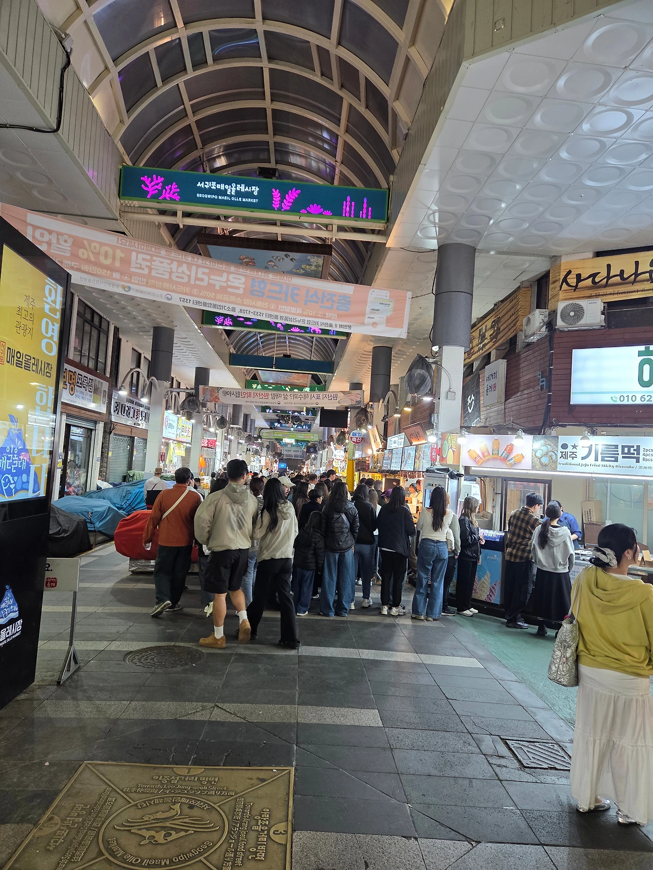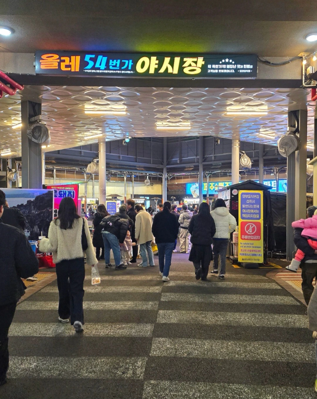 그리고 저녁에 서귀포 올레시장에 다시 갔다. 8시 20분이었지만, 외국인, 내국인으로 불야성이었다. 야시장 코너도 있었다. 이번엔 이럴 줄 알고, 찍었다.