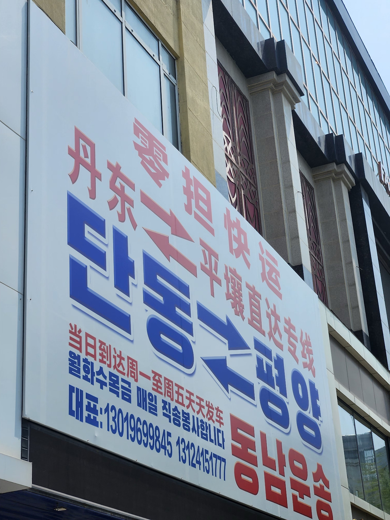 순간, 대학교 시절 새터민 누나가 들려줬던 이야기가 떠올랐습니다. 북한에 가족을 두고 온 그녀는 계절마다 한국 상품을 브랜드 라벨을 지운 채로 택배로 보낸다고 했습니다. 단동에는 아마도 그런 물류를 담당하는 회사들이 여러 곳 있는 듯했습니다. 그 문구 하나로 이 도시가 단순한 국경 도시가 아니라, 실질적인 교류의 창구라는 사실이 와닿았습니다.