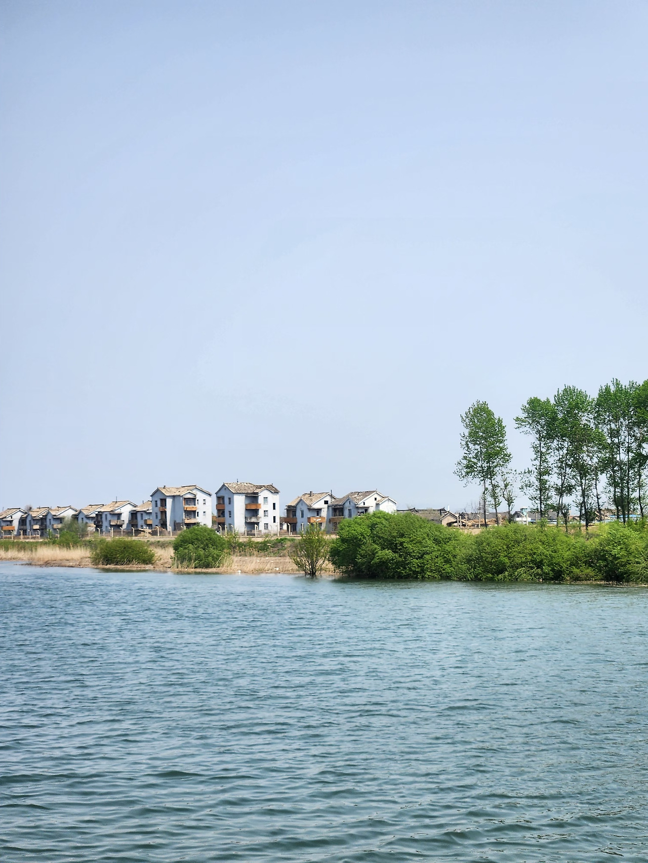 배는 강을 따라 조금씩 북쪽으로 향해 갑니다. 어느 순간, 작은 섬 하나 옆을 지나게 되었습니다. 지도를 켜서 확인해 보니, 바로 위화도인 것 같습니다. 역사 교과서에서 보았던 조선의 건국자 이성계가 회군을 결심했던 그 위화도. 수백 년 전 역사의 한 장면이 눈앞에 펼쳐졌다는 감회가 잠시 밀려왔습니다. 그러나 곧 마음은 무겁게 가라앉기 시작했습니다. 섬 가까이 다가가자 창문조차 없는 낡은 집들, 그리고 오래된 외투를 입은 사람들이 집 앞에 앉아 있는 모습이 보였습니다. 집들은 최소 40년은 넘은 듯했고, 그 어떤 삶의 온기나 활기도 느껴지지 않았습니다.