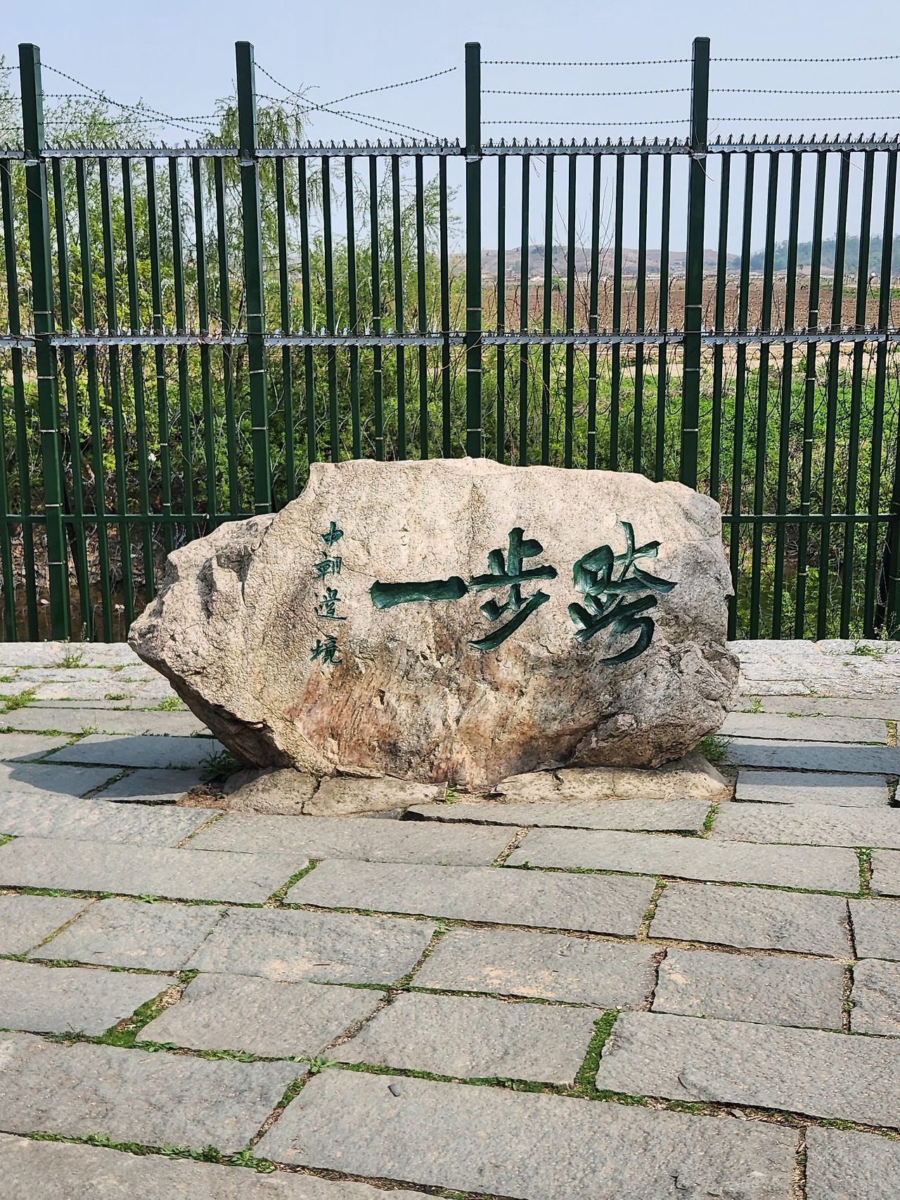 성벽 아래로 내려오니 ‘일보과’라는 이름이 적힌 비석이 세워져 있고, 그 뒤로는 철제 펜스가 길게 이어져 있었습니다. 들리는 이야기로는 불과 10년 전까지만 해도 이곳엔 펜스조차 없었다고 합니다. 수많은 탈북자들이 이 얕은 강을 건너 자유를 찾아 떠났고, 남북관계가 경색되면서 지금은 모든 국경이 철저히 통제되고 감시받는 구조로 바뀌었다고 합니다.