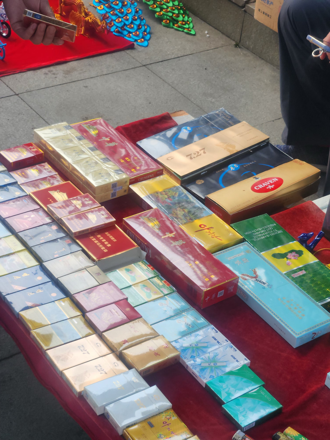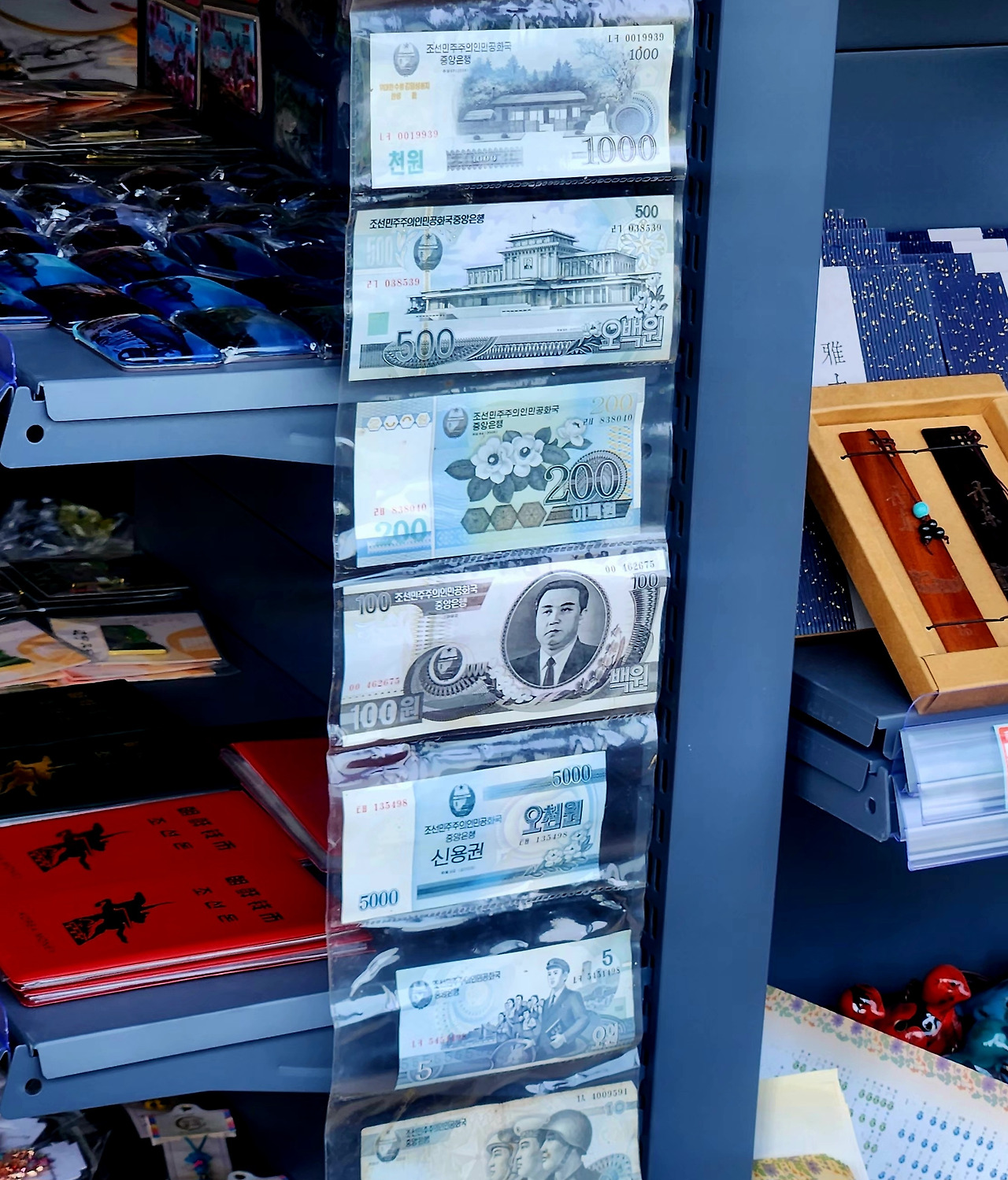 북한 관련 기념품을 판매하는 노점들