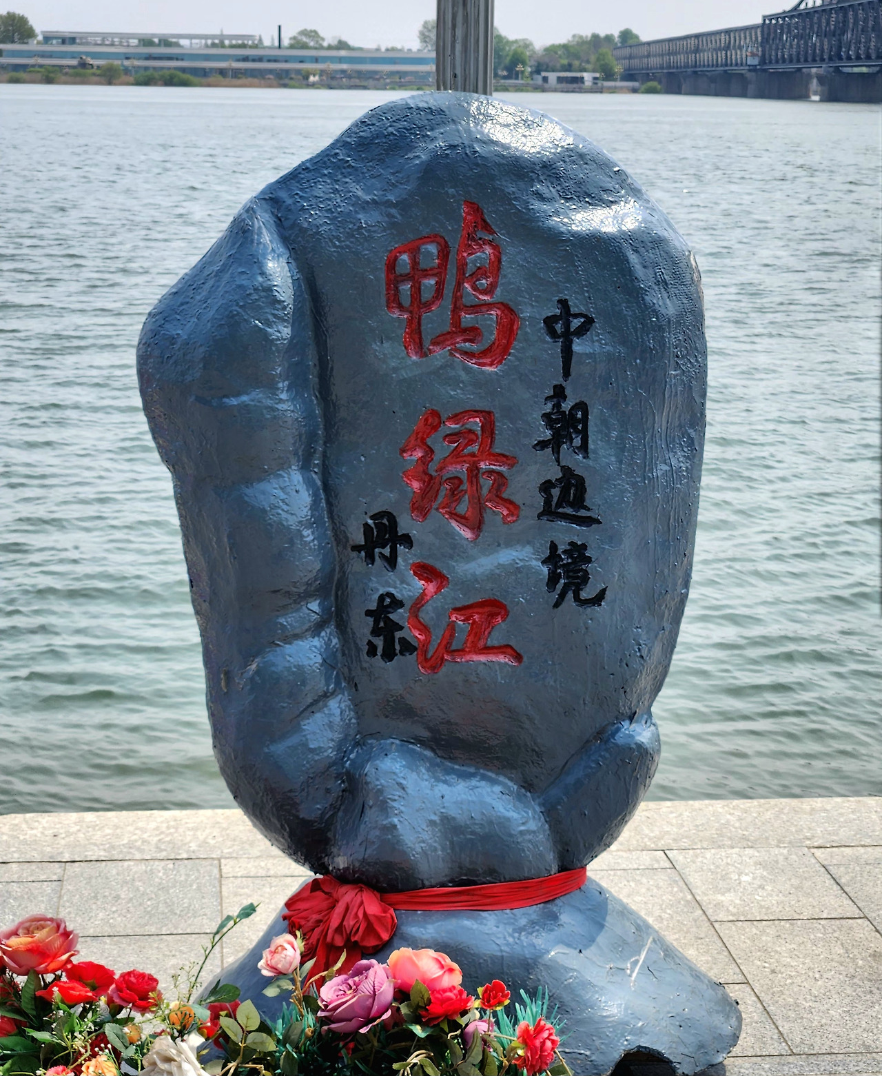 미군의 폭격으로 끊겨버린 압록강 단교와 압록강 표지석