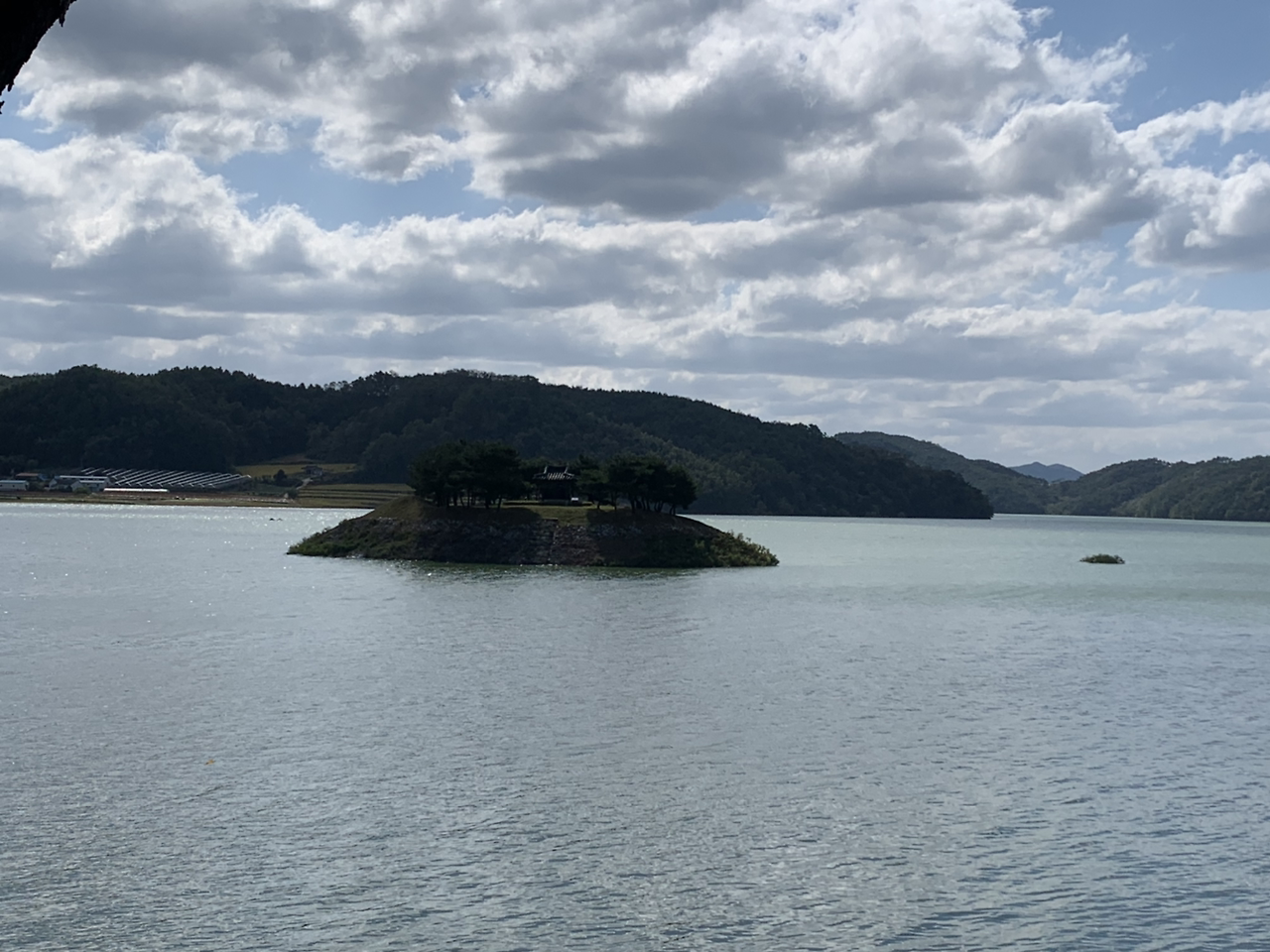마주 보이는 저 인공섬에 시사단이 있어요.“