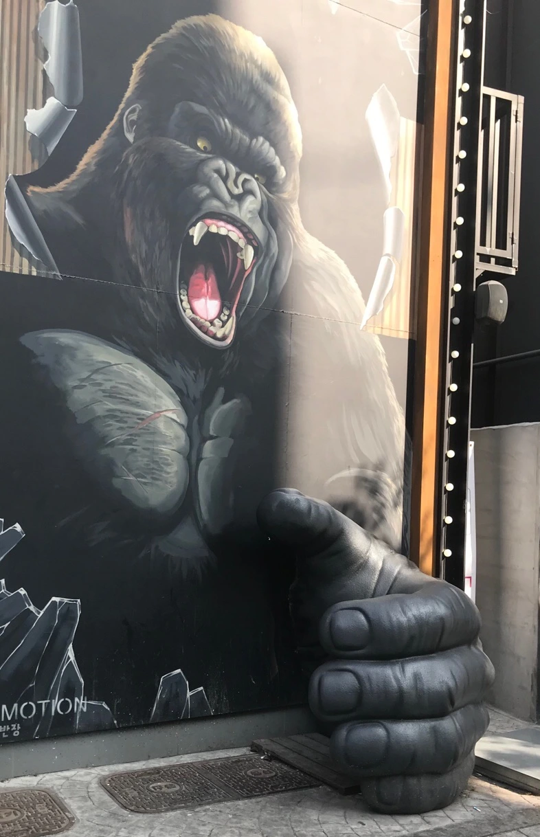 가끔 길을 걷다가 참 기발하다 싶은 것들을 본다. 홍대 앞을 걷다 우연히 본 것도 그렇다. 벽면에는 킹콩 그림인데 손만 조형물로 나와있는 모양이다. 저 손안에 들어가 사진을 찍으면 킹콩 영화의 화보 주인공이라도 될 것 같다. 가끔 이런 풍경들이 평범한 삶에 미소를 짓게 한다.