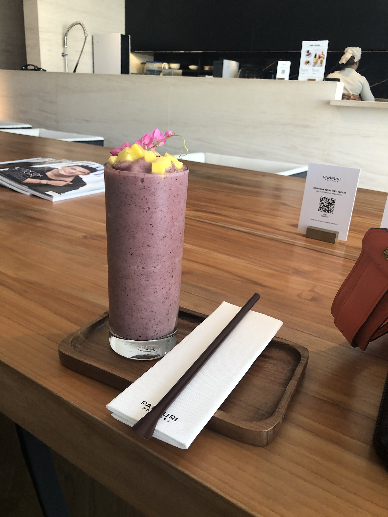 몸이 너무 안 좋아 한 끼도 먹지 못하고 마사지를 받으면 완전 녹다운될 것 같아서 과일 스무디를 하나 시켰다. 정성 가득한 디피와 분위기 속에서 스무디를 훌러덩 들이키고 정신이 좀 들었다. 판퓨리 스파의 엄청난 뷰가 너무 좋았으나, 엄청난 뷰를 마사지를 할 땐 볼 수 없기에 사실 탄의 캄캄한 뷰나 큰 차이가 없어서 더 황당했다.
